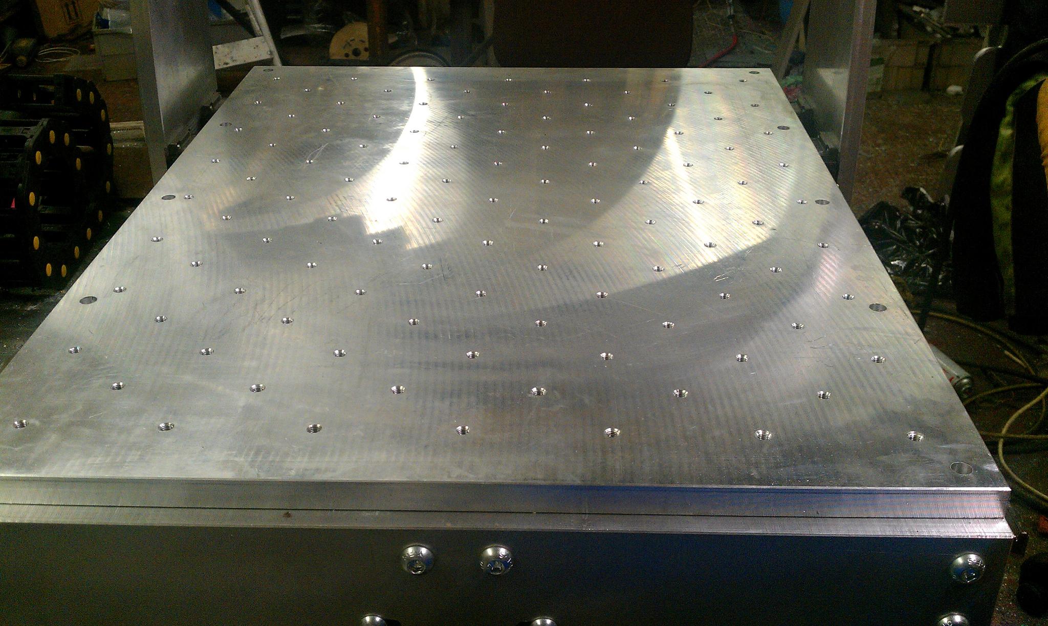 My latest thought is to bolt down a 20mm aluminium plate to the top of the steel raised area (shown in photo). I will then use the machine to skim the surface flat. Then I will use the machine to drill a grid of holes which I can then tap (maybe the router could do this??) for holding jigs and fixtures.