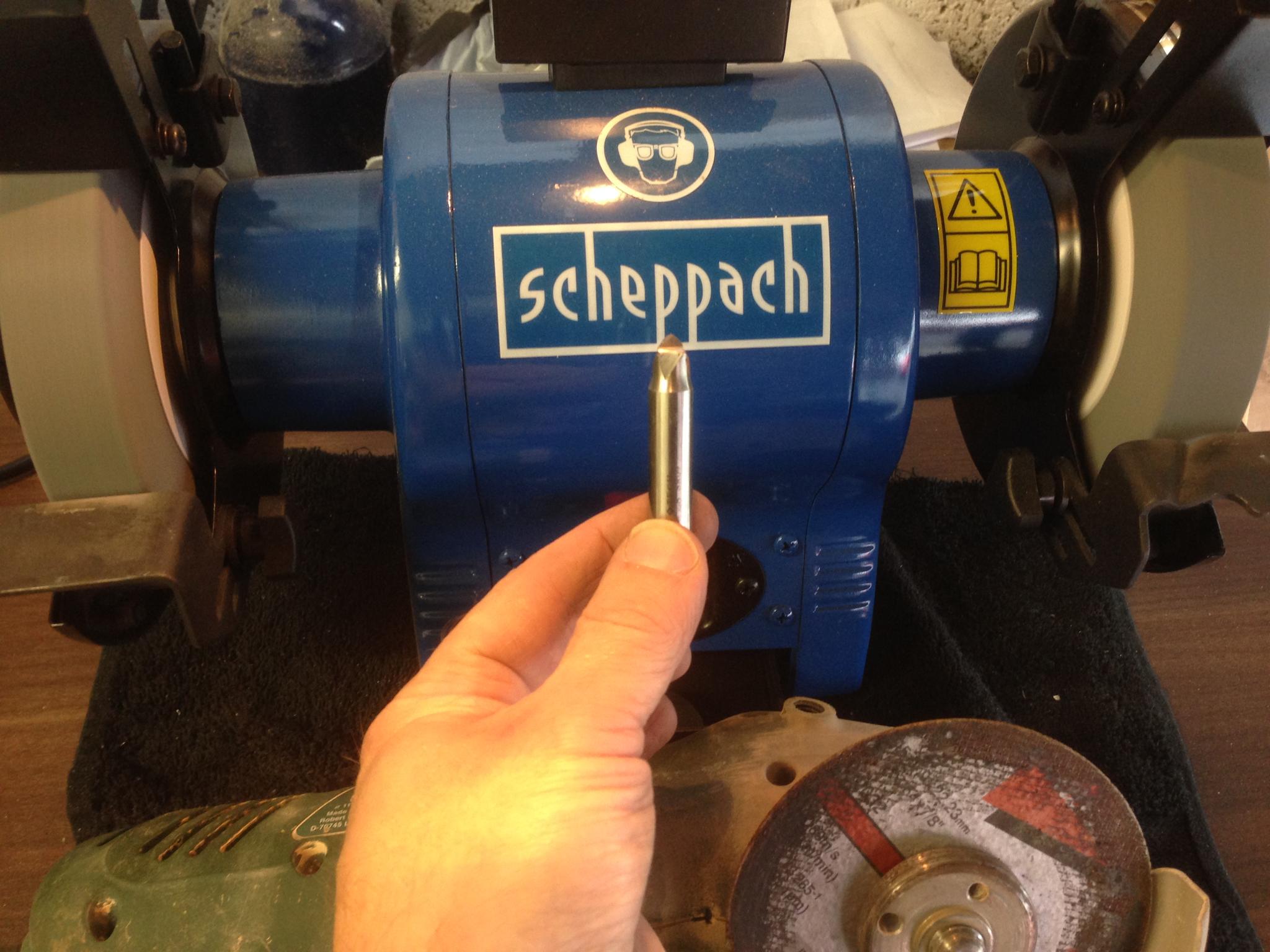 Then marked the tool, roughed it out using an angle grinder with an inox blade. Then used the bench grinder to ground the required shape. Still a bit of finessing required: