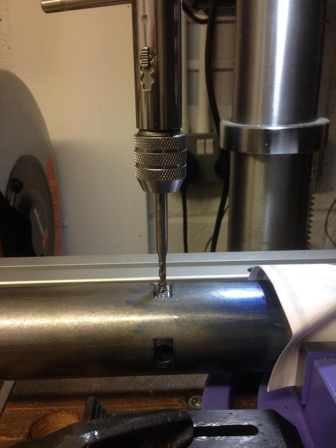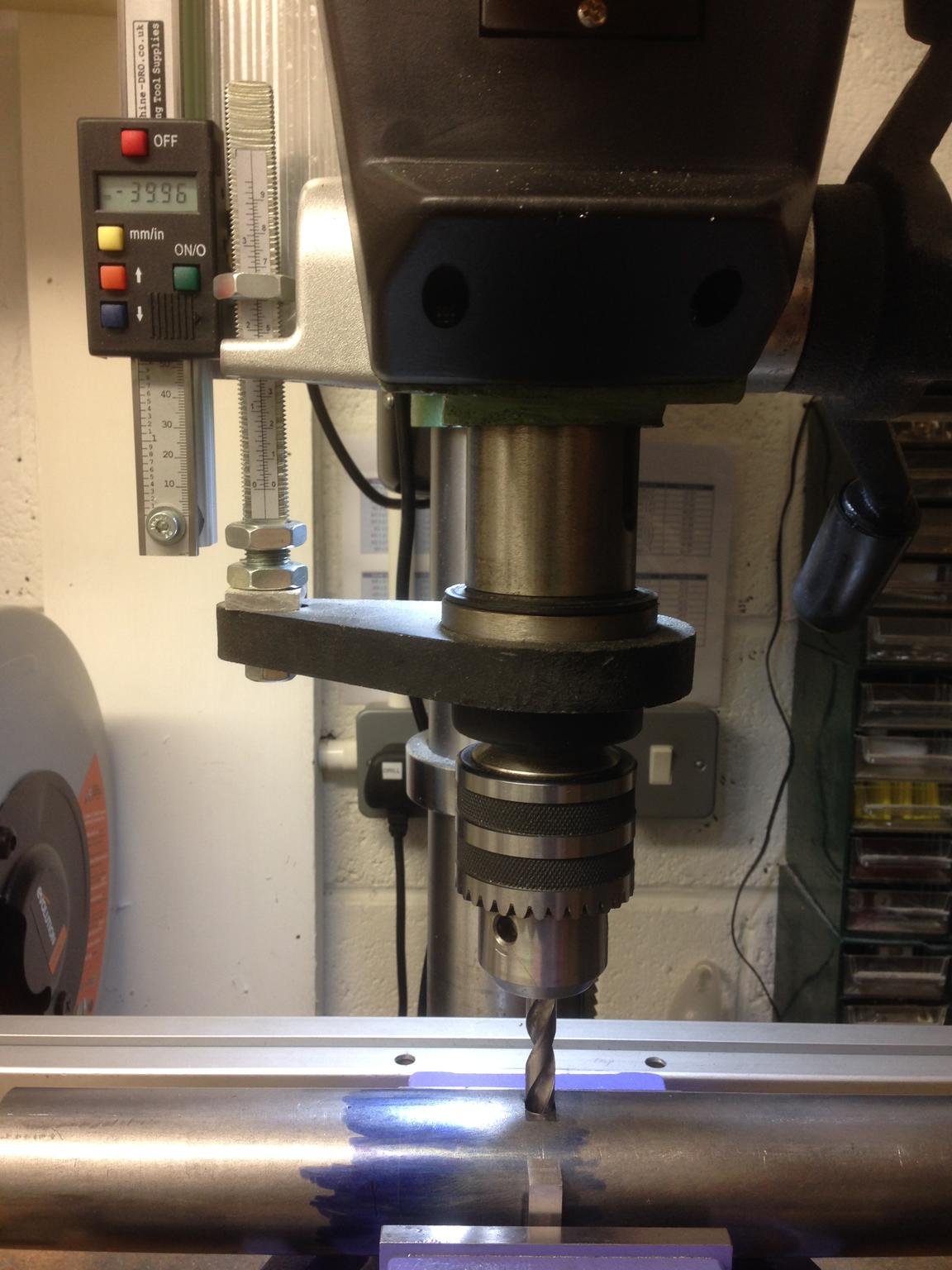 Over to the drill press for the dia 10 pilot to 40 mm depth: