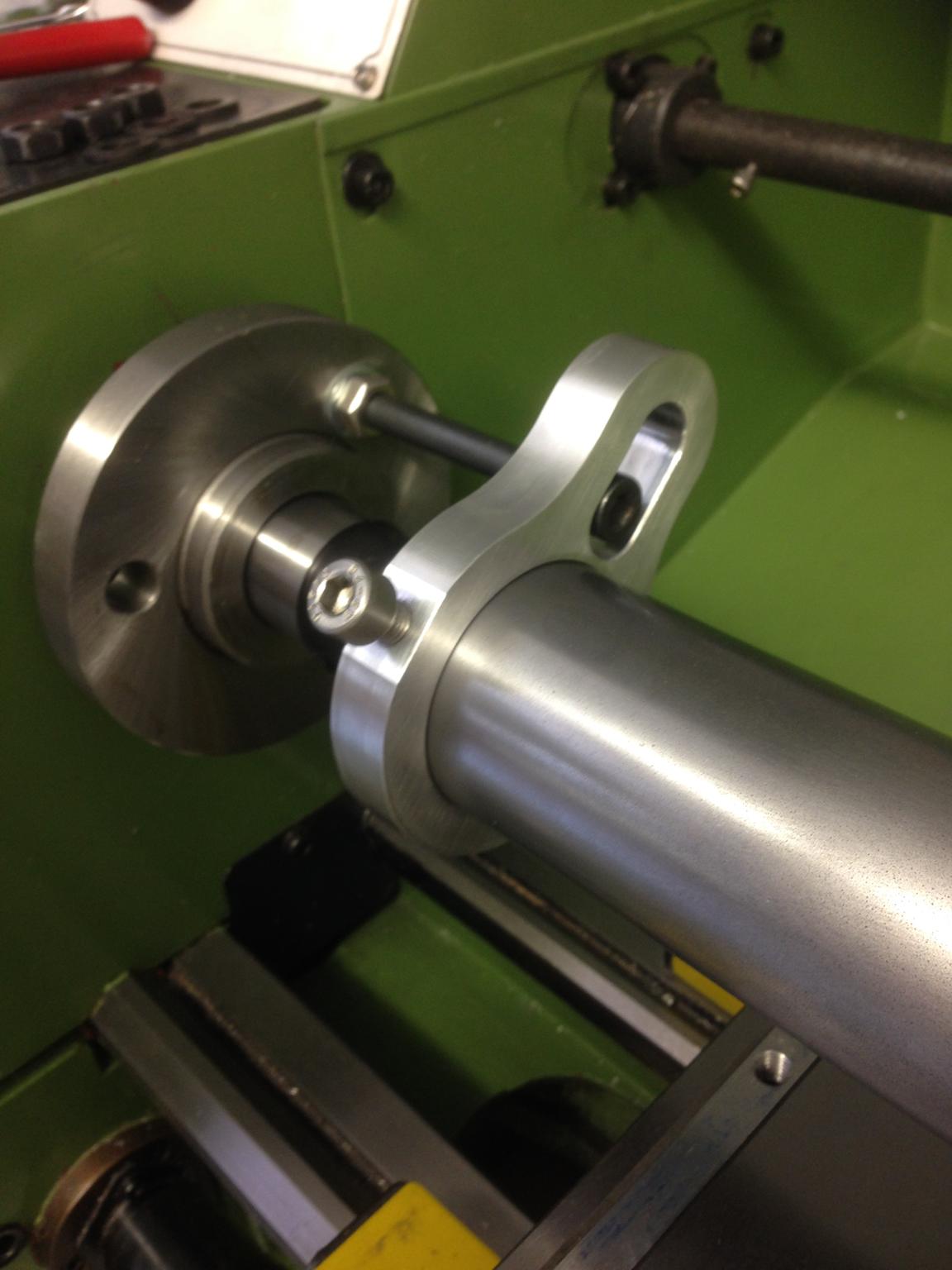 Also I had to make a lathe carrier (to transmit the rotation) because couldn't find a commercial one that big (bar is 50 mm). I'm sure they exist, just didn't see one on a quick search and I made mine in the time it would take the postman to send one, plus it was 'free' from scrap material.