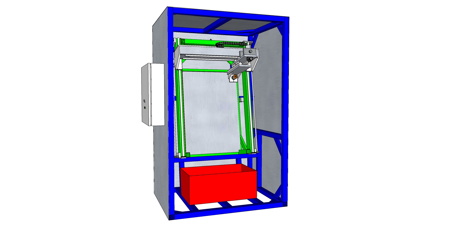 Been thinking about where to put the router and will be putting it an 80° angle mounted in a frame. As it's in a work environment I'll be building a frame that can be sheeted and have interlocked doors on it......something along the lines of the below: