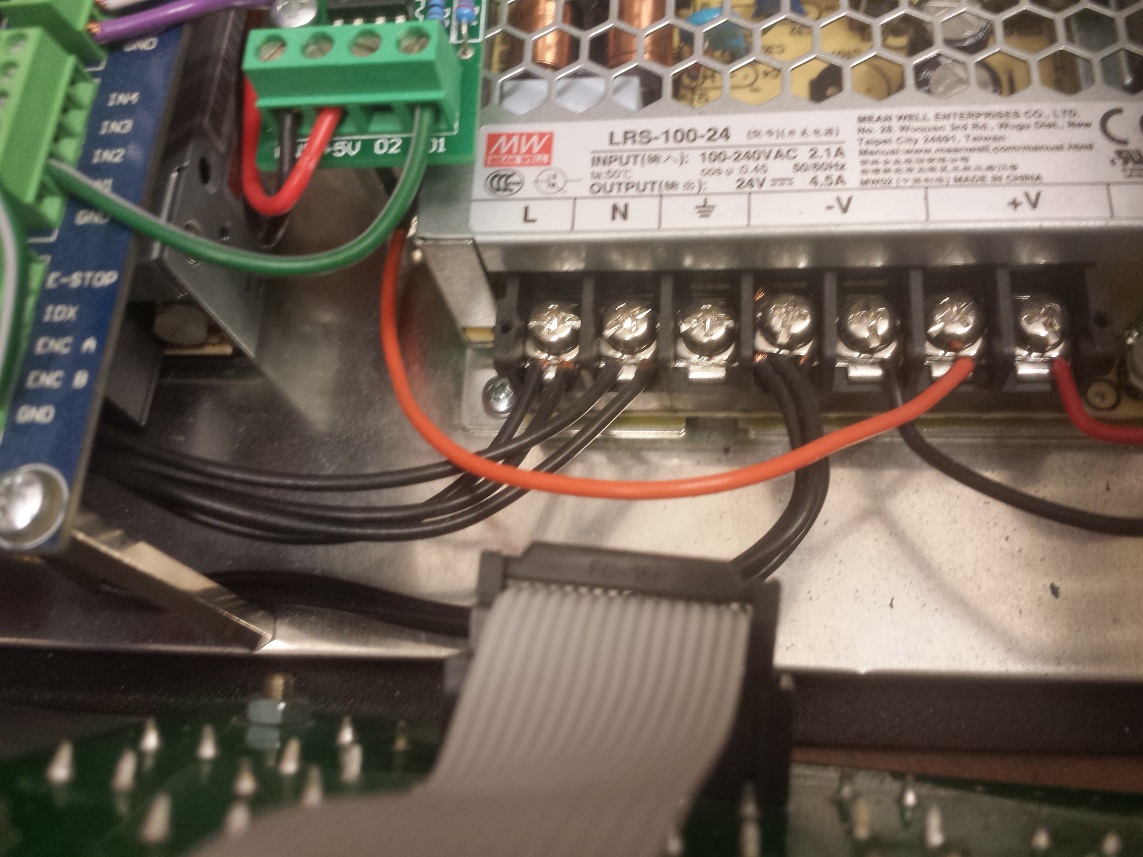Ah yes that makes sense except im not sure what wires go from the power pack to the spindle pcb. One main question though, at the moment, the power comes into the planet enclosure from the way via a kettle/pc like plug. It then goes to a switch on the front of the enclosure. It is then wired from the switch to the l, n and gnd of the enclosure power pack. If I link the L, N and gnd from here to the spindle power pack above would these cables handle it do you think or do I need to rewire in a thicker wire?