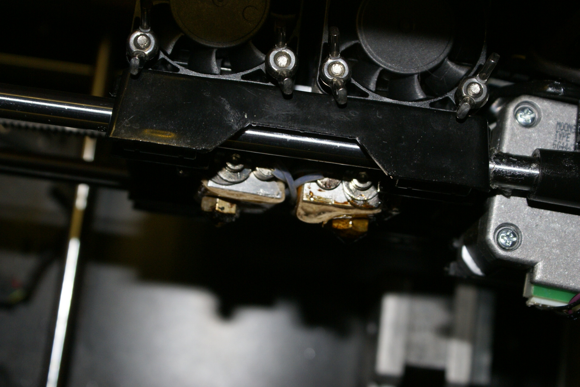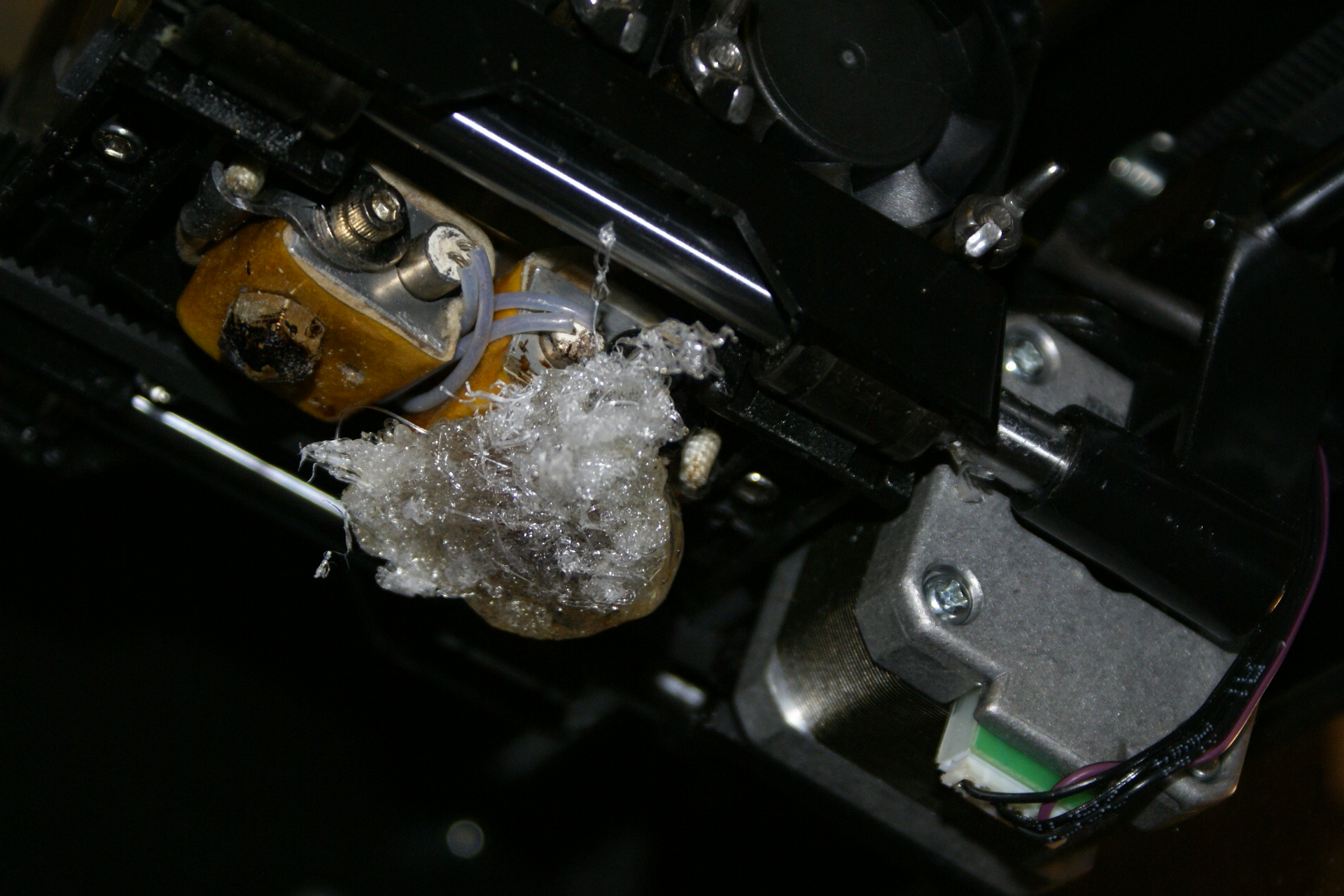 I made a couple of mods to the printer. The first one was to fit stainless steel extruder gears, but this proved wrong. The stainless does not have the self cleaning property that the original brass has, so any minor filament jam just grinds a notch in the filament and the dross just stays on the gear and requires disassembly to get to it to clean.