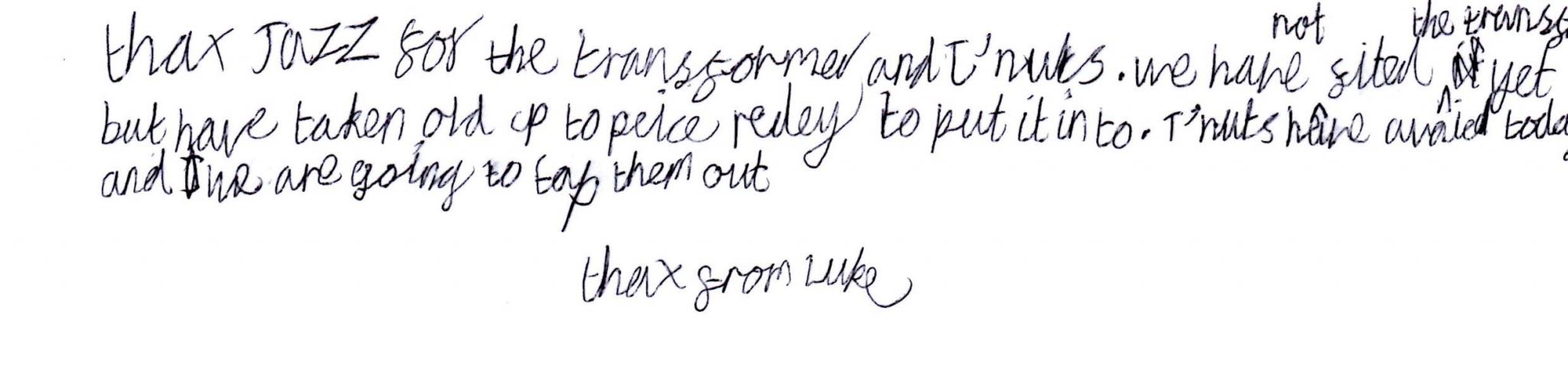 but Jazz one out of two items have arrived and Luke would like to say thank you in his own words and in his own hand writing.