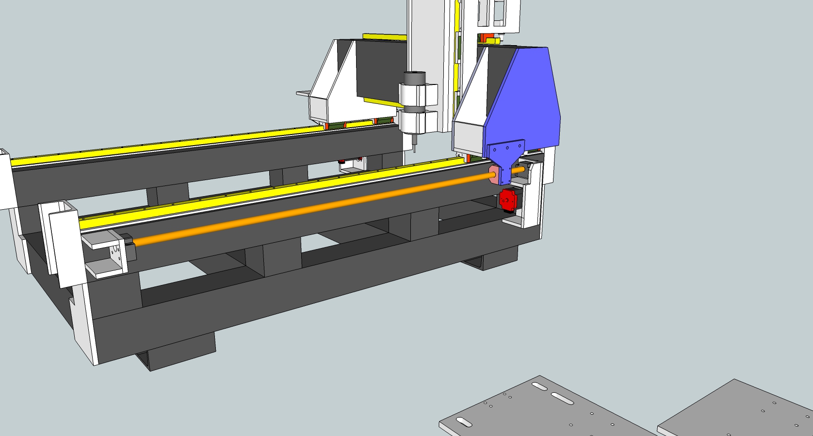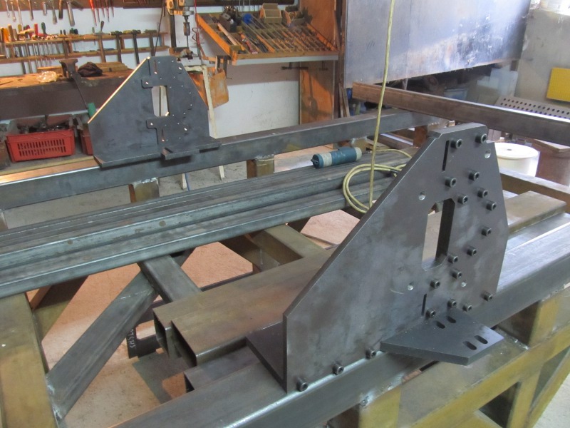 then dismount all in blue, ballscrews , etc. Then weld well the 2 fixtures. No everything is in parallel/guide rails and ball screws/ and perpendicular/ball screw supports.
