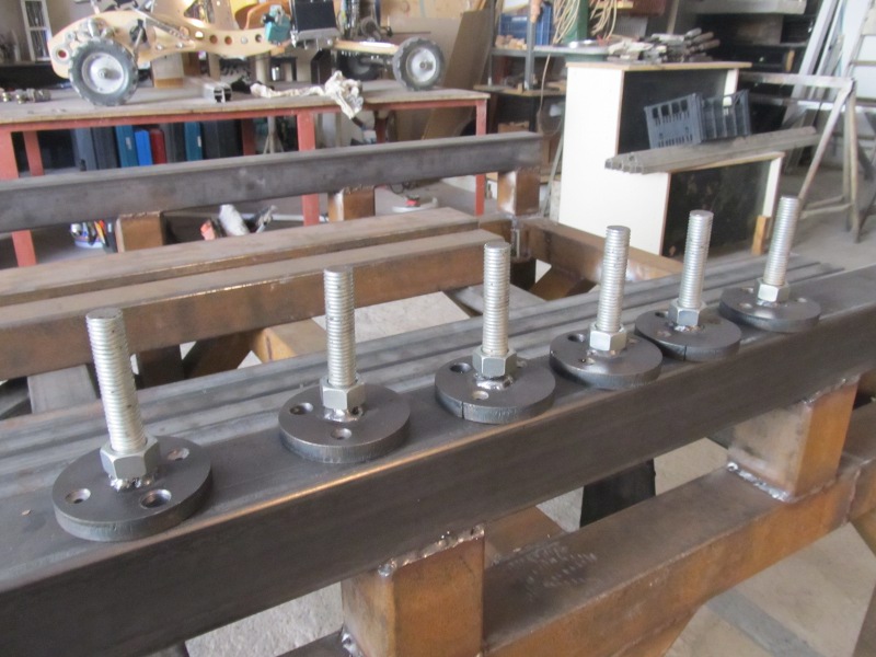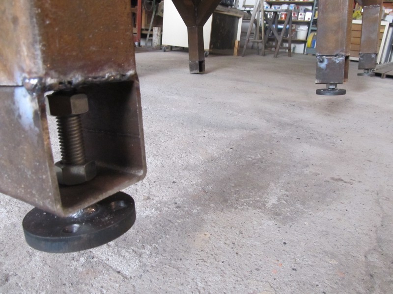 Syliavski when you say NOT to adjust the table by bolts, what if there is any imperfection 1cm at the floor ? The hockey plucks that you suggest will be welded at the frame. What material are made of these plucks?