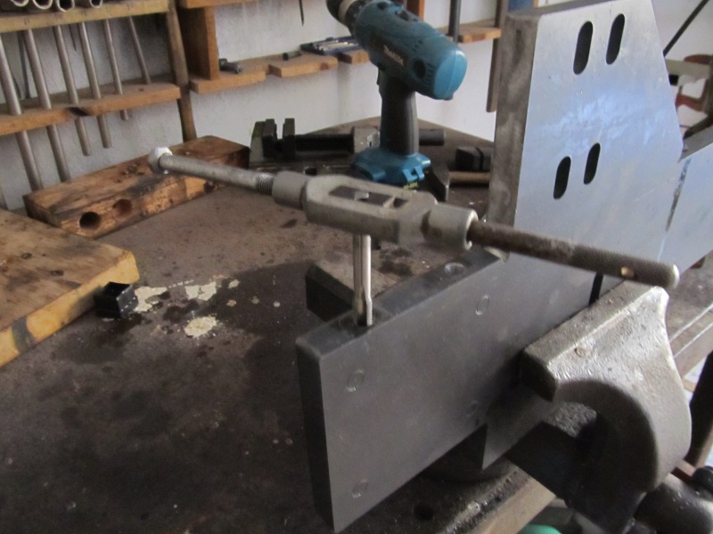 Today i start the adjustable foot construction. Syliavski suggest me not to put that foots. Even if i use them or not they are very usefull to level the table as perfect as possible for the epoxy method. You will see each foot has 4 holes. The one at the center is for the bolt the other two ( the smaller ones ) are to bolt a softer material at the side of the foot that touch the ground. The fourth hole is for bolting the foot at the floor