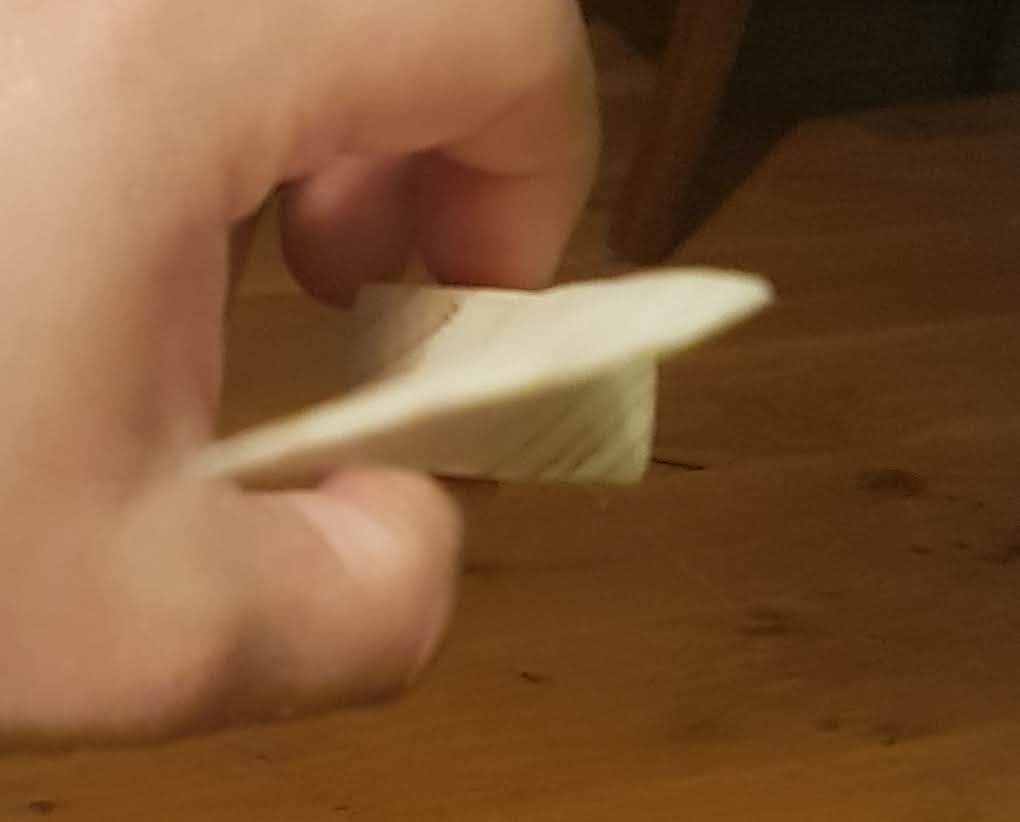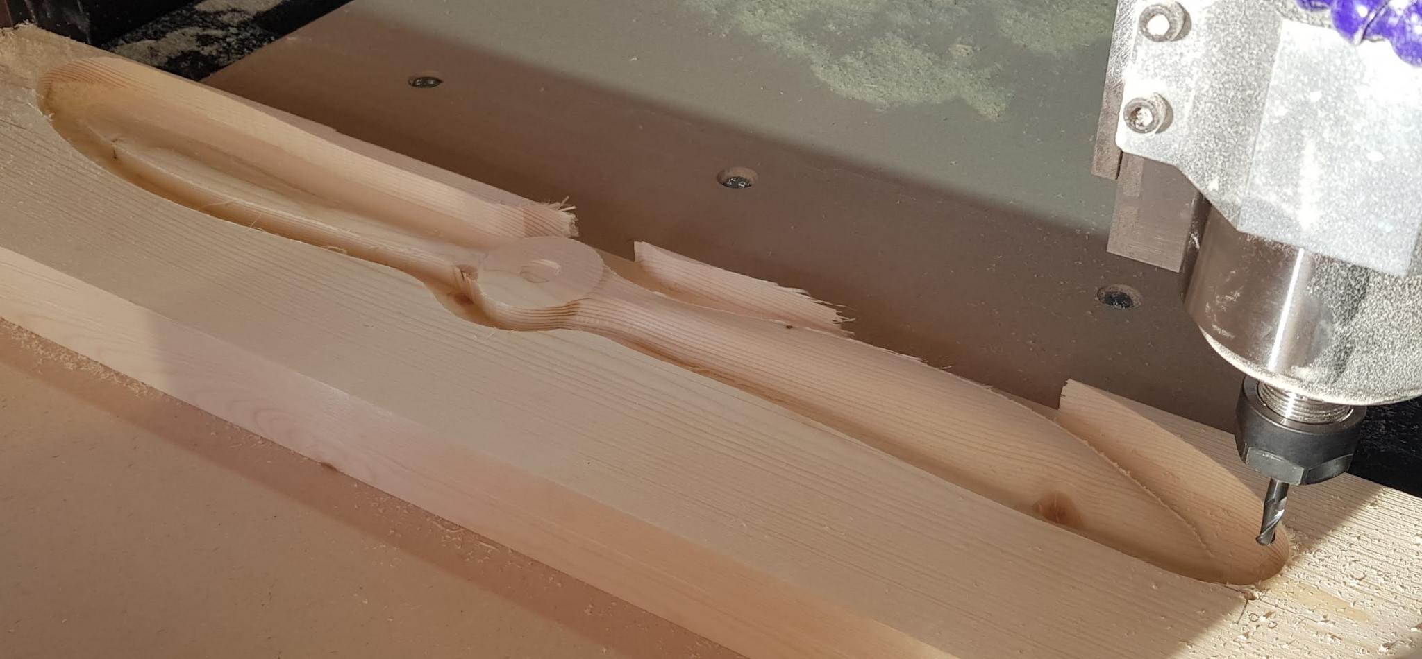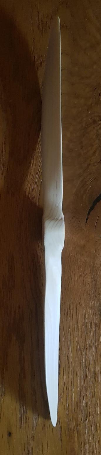 Heres how the prop turned out, after a few duds and a bit more learning. Nothing special, but I'm rather pleased with my first two-sided 3D carve - quite hard to photograph that twisting shape though..