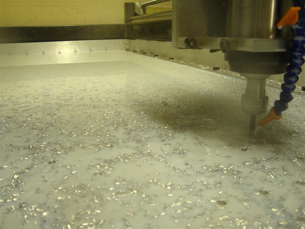 In other news, I have made and installed the drain for the router bed so I've been cutting with flood coolant. I fount that one corner of the machine is ever so slightly lower than the rest, so I put the drain in that corner so the coolant flows. A week later I discovered the reason for this corner being lower - there's a crack in the floor and it's sunk down!