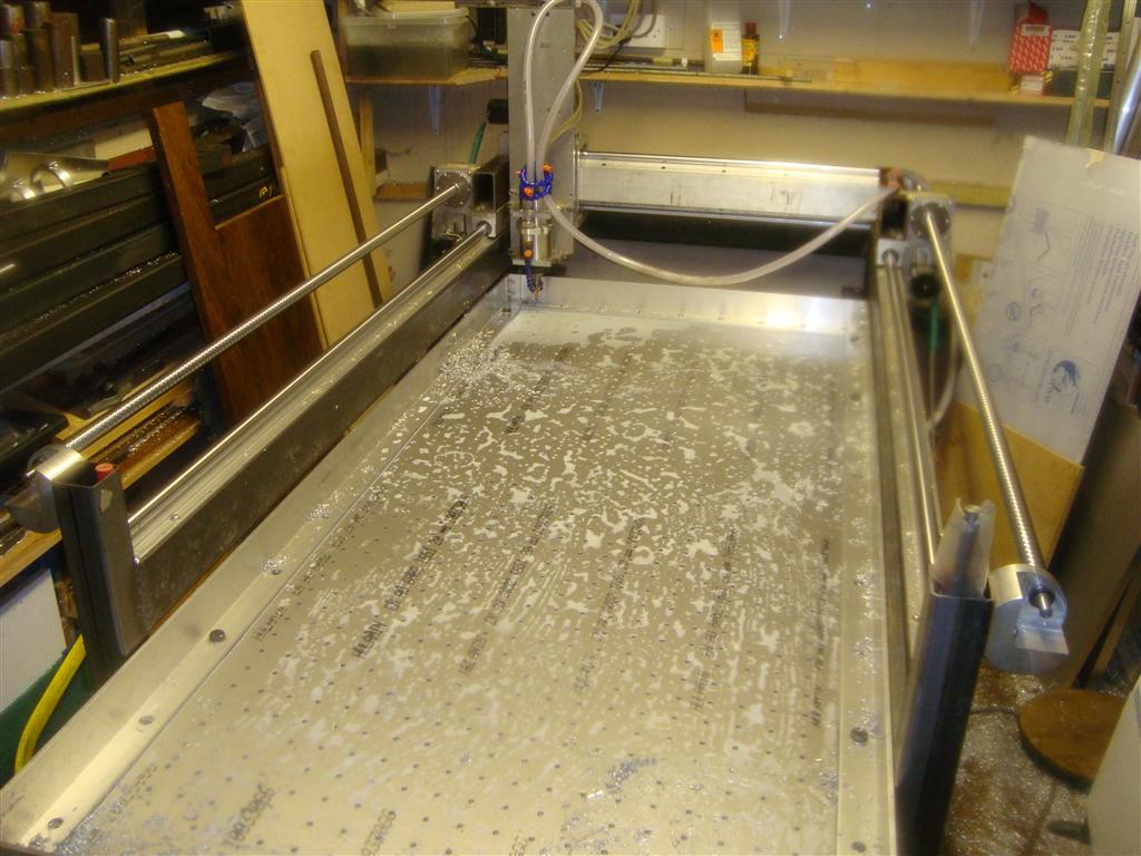 The Z-axis motor, not surprisingly, got pretty toasty but other than that it went well. I had to move the bed out to reach the whole length, so it's currently 360mm from the normal position. Just need to make the router cut a drain in it, then I'll put it back.