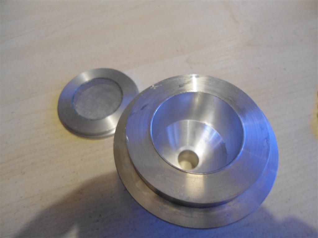The drain is fairly basic, just two parts I made on the lathe to hold some fine mesh, which is easily replaced: