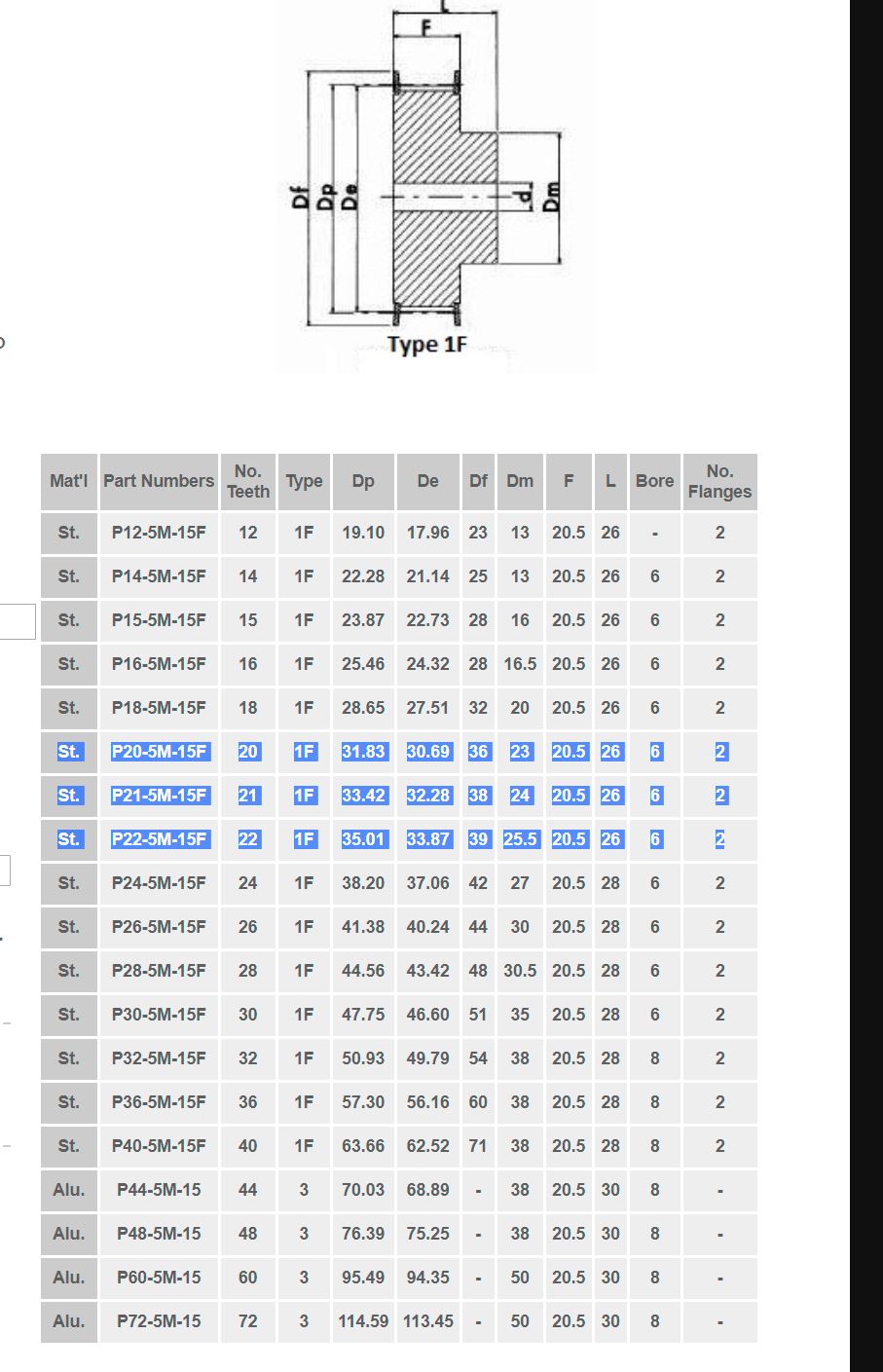 So from these 3, it seems the best will be the P22-5M-15F . 22t is not so bad, outside diameter of the teeth is 35.01 so basically same as the 35mm of the OD of the part and the ID of the bearing. That will work.