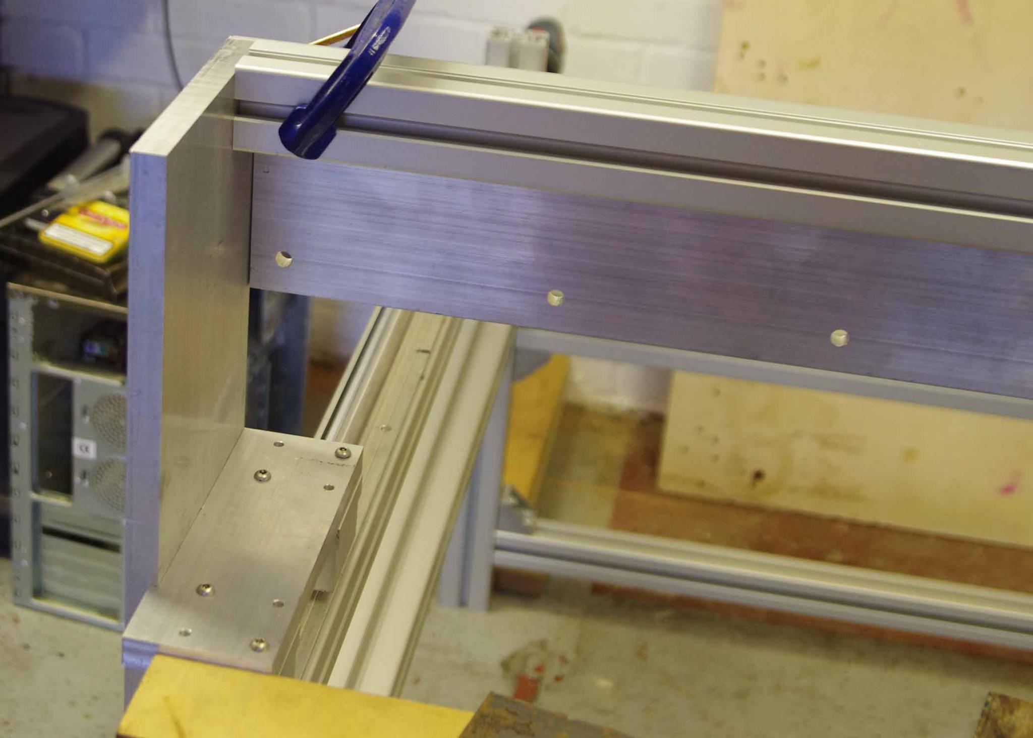 I think the slight whip on the 12mm gantry support rail is not helping, I should be flat when both extrusions are bolted up to it. I was quite surprised when I offered the extrusion up to it and had to G clamp to get it flat.