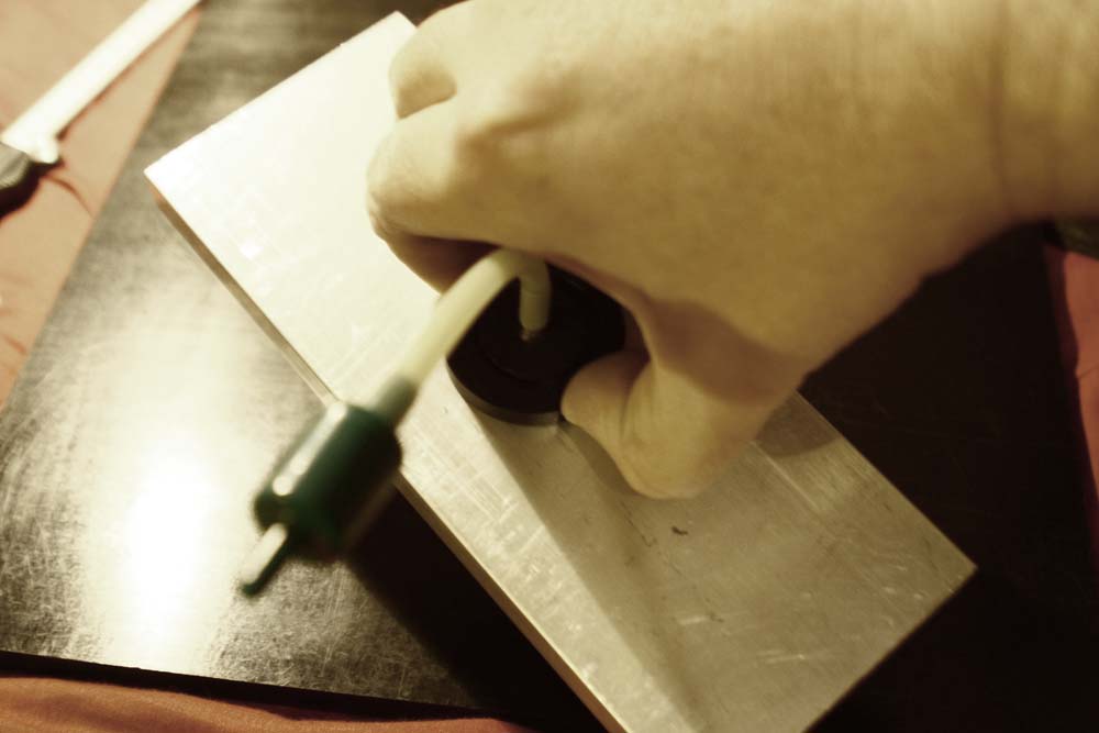 one way valve holding the vacuum,, at 20mm O/D it only just holds onto this alli plate