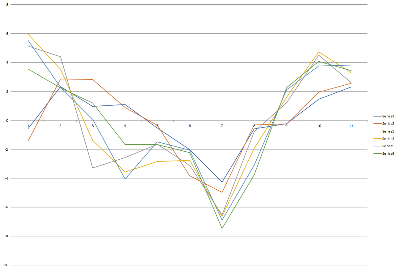 In the pursuit of madness I have just done another test on the milling table with the better quality laser, I did 6 runs each with different parts of the laser line some with the laser inverted, with the angle of incidence to the table random, etc. Again 10 stations over 500mm. Results are very consistent which makes me think there was something wrong with my last test.