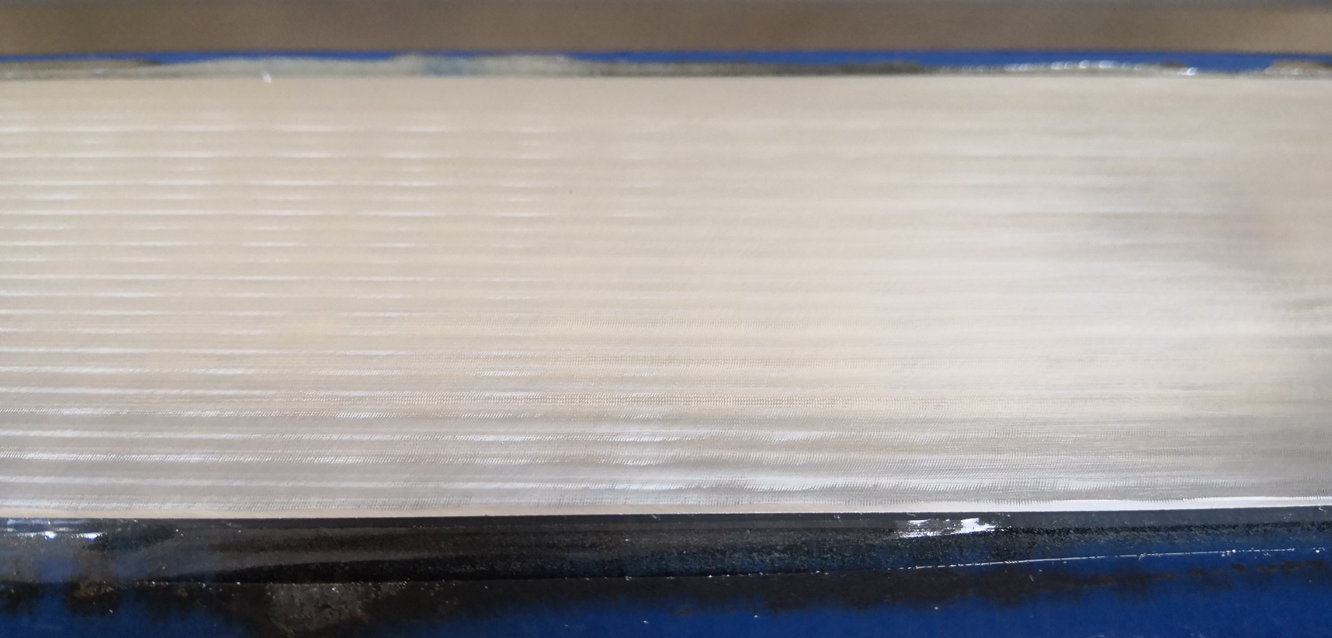 I used an 8mm 2 flute carbide bit, there is no scalloping which means the head is in pretty good tram (I can't tram it until the bed is on). I ran the tool path twice, initially to bring all 3 strips down to height then dropped the Z 0.1mm for a finish pass.