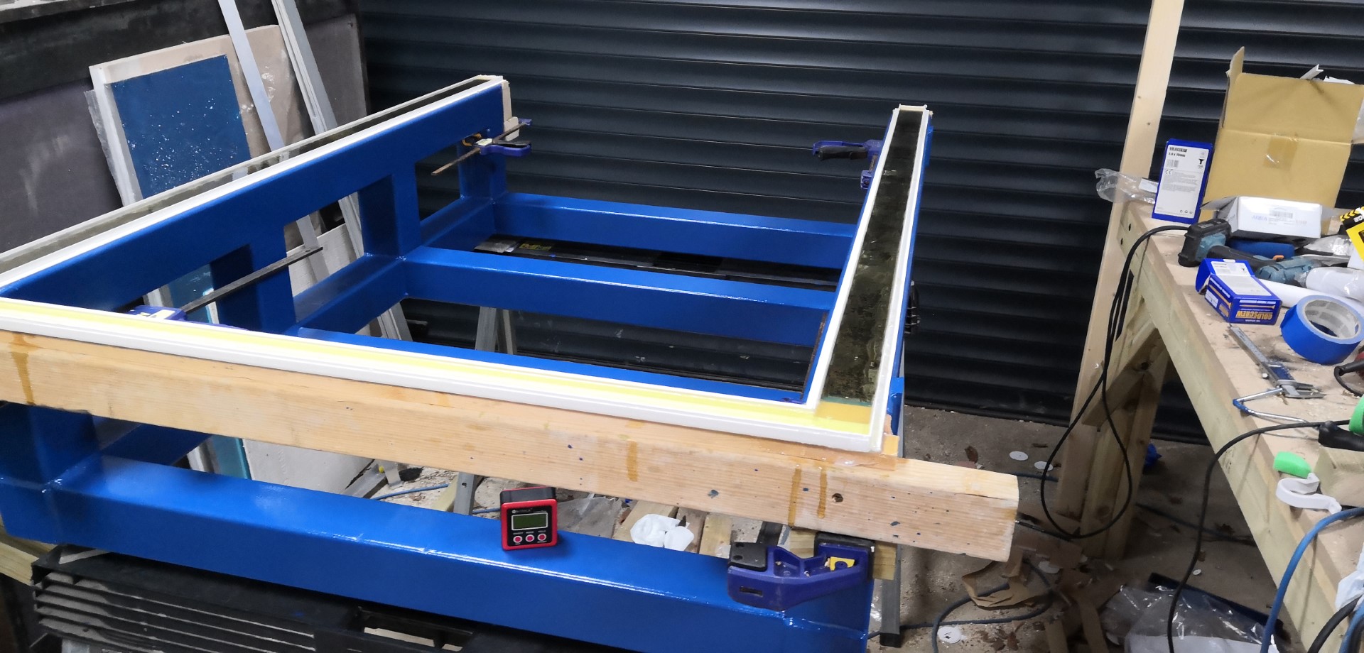 2. You must use non-absorbent material for the moat and dams, anything else and non-linear capillary action into the material will mess things up. I used 10mm pvc angle for the dams and pvc trunking for the moat. The dams were stuck to the frame with thin toffee tape which worked well (didn't leak) but was a pain to get off.