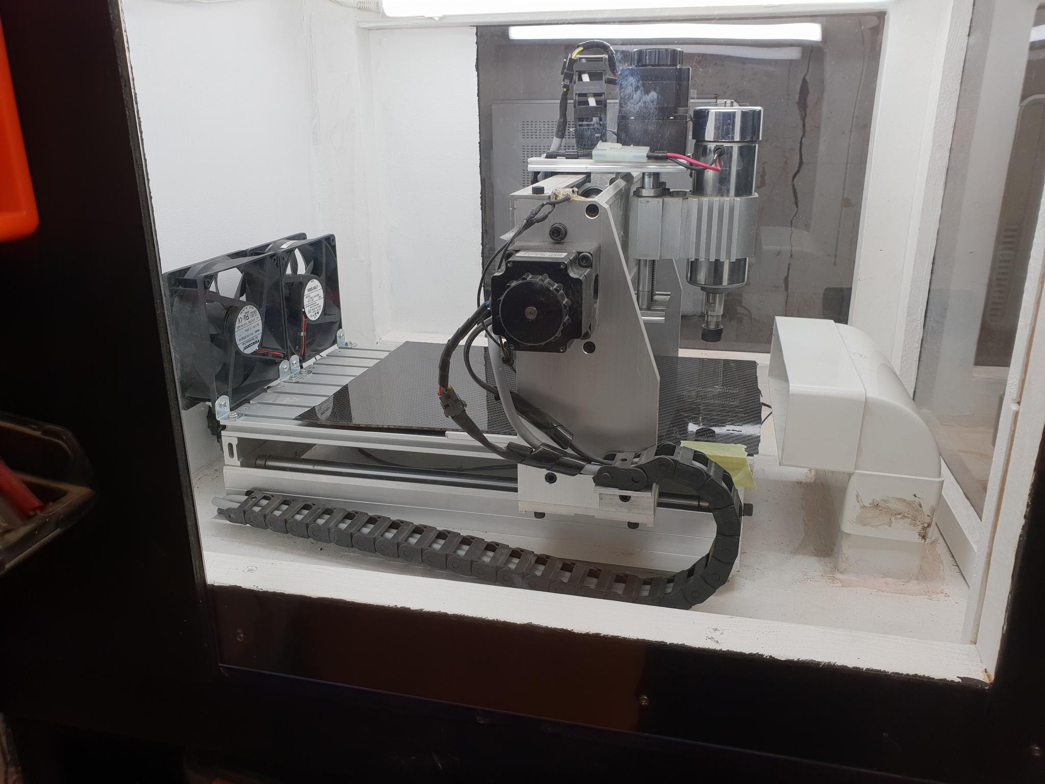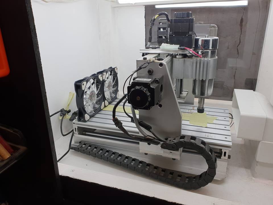 Well ive finally got my cnc setup to a level I am happy with, had a lot of issues the past week. Firstly the pc fans I got of ebay were very cool with the led's but they were piss poor at moving air so I ended up ripping a few pc's apart to get some much more powerful fans.