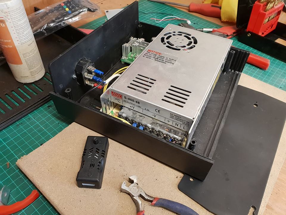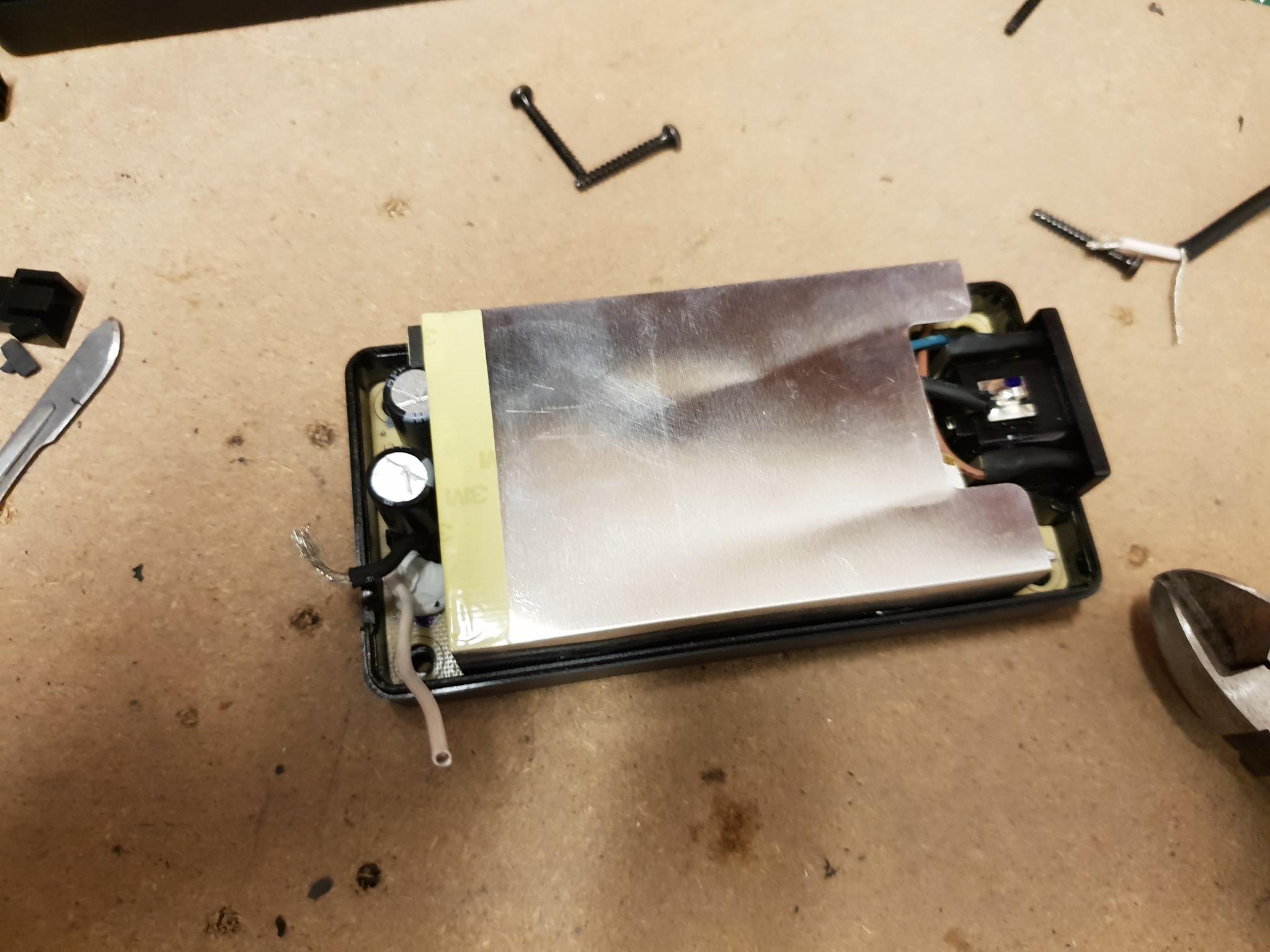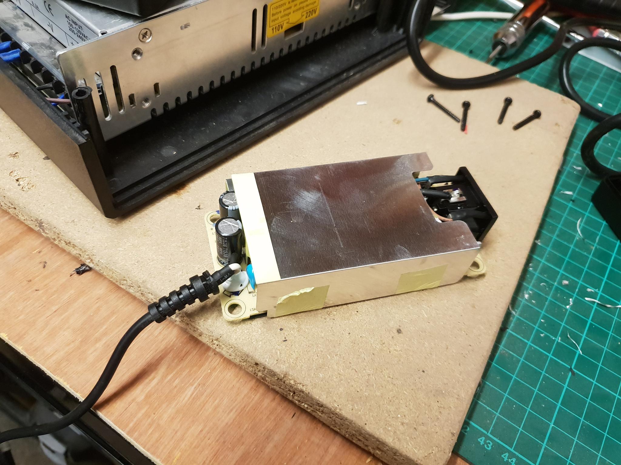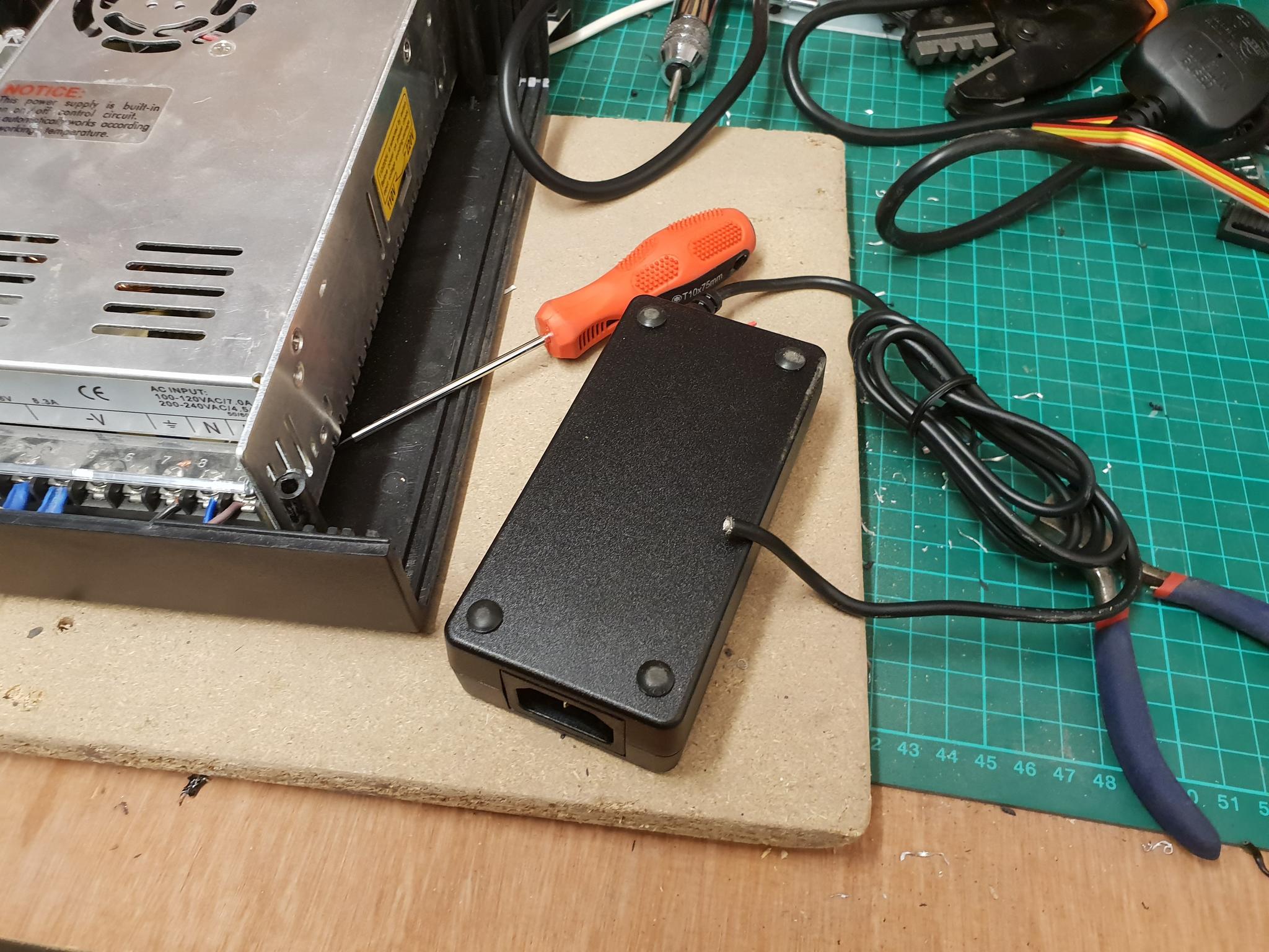 To power the fans I got a laptop power pack and started stripping it back, I replaced the kettle plug with wires to be hard wired into the 240 supply to the spindle power pack.