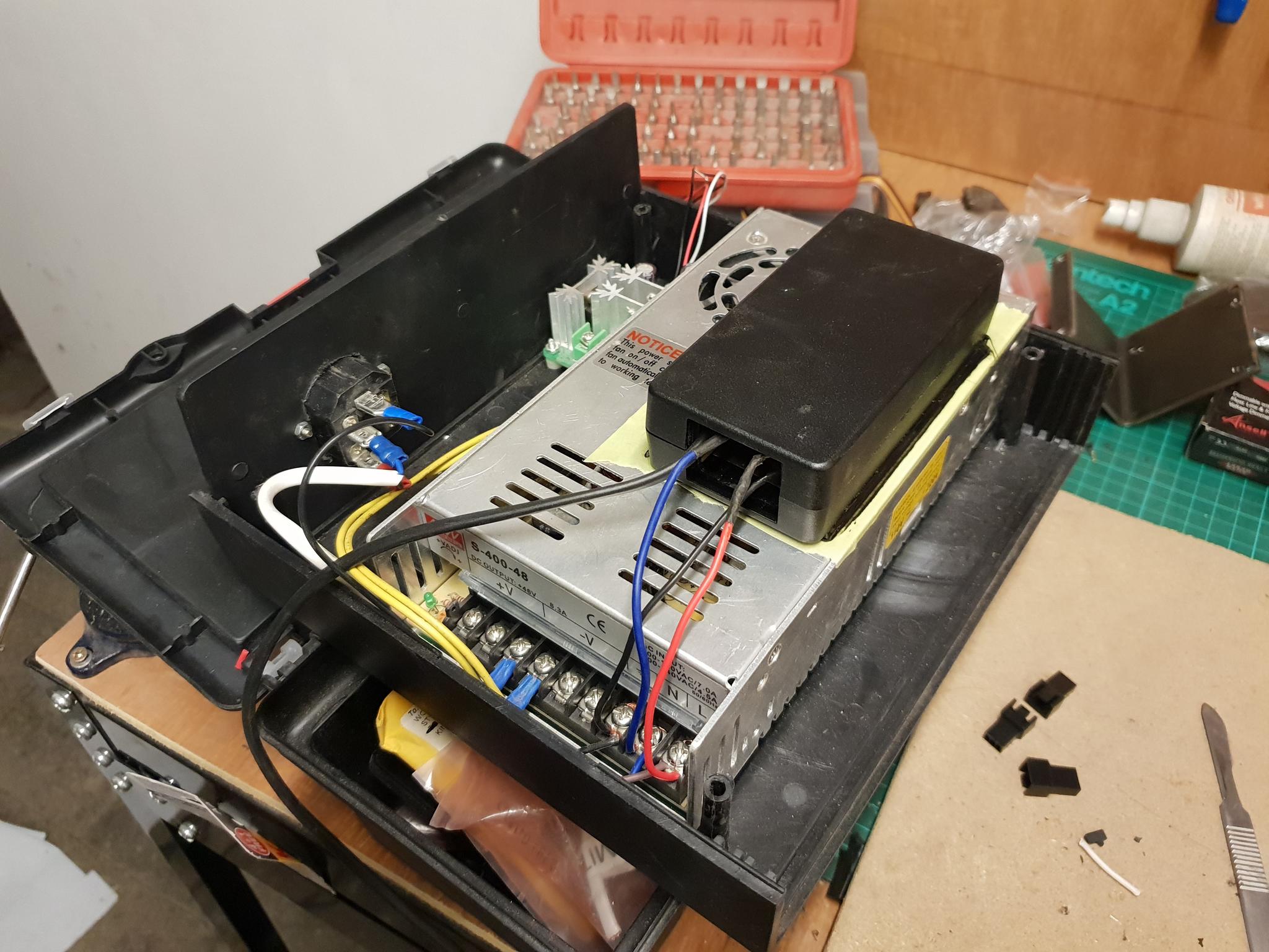 The output to the fans was controlled via a small toggle switch. I then secured the powerpack with hot glue onto the main power pack. I have got another fan to aid cooling within this box but I was very surprised as to how not hot the box gets so I dont think there is any need for an additional fan, will see how it goes. Attachment 24685 I also wired in a controller for the spindle