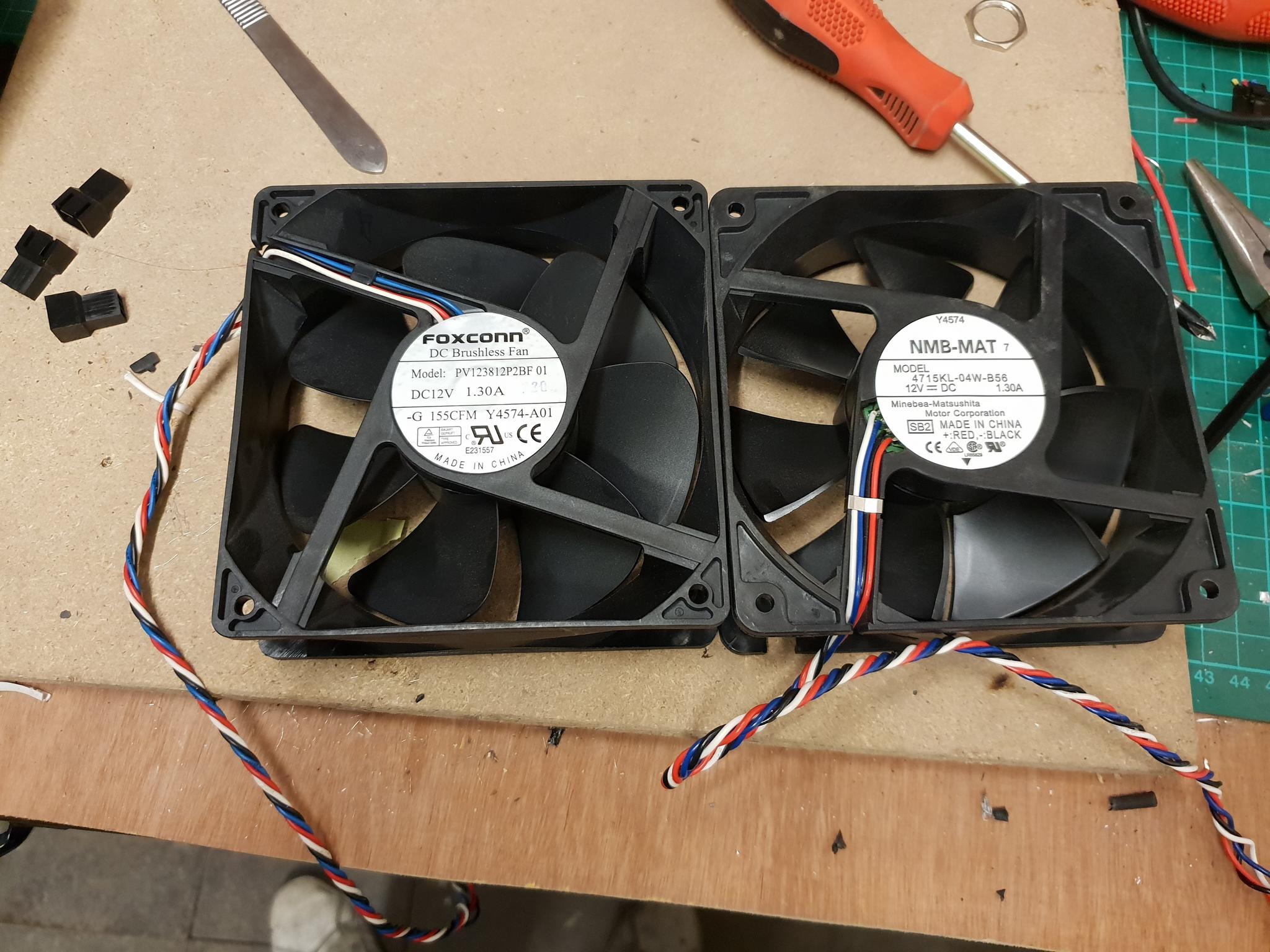 Hi there mate, good progress! Interesting extraction, are you expecting to blow down the duct? Might be more effective to suck through the duct? Anyway assuming your Fans are 12v then something like this will work fine: