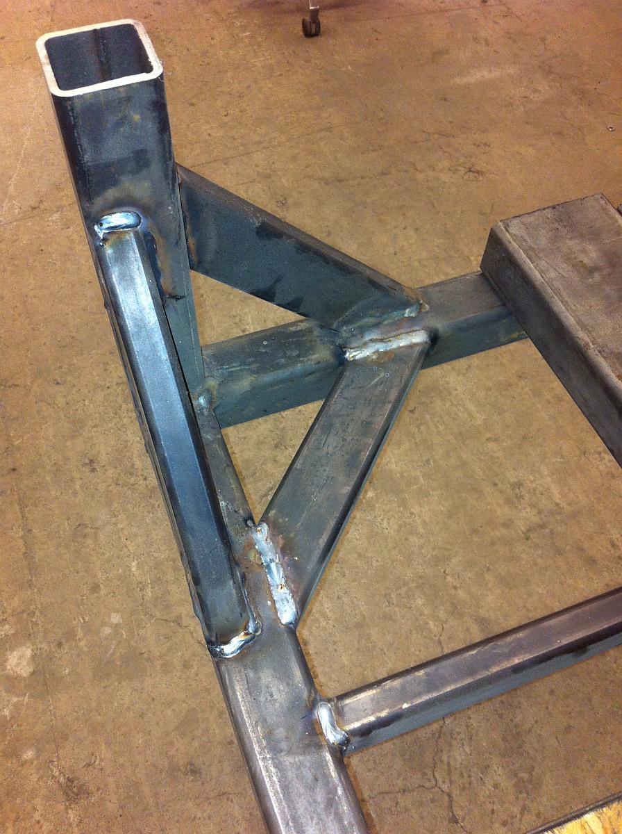 Today in lunch I finished off a couple of welds on the frame that I missed last week and put the first of the side rails on and tacked the back upper beam on.