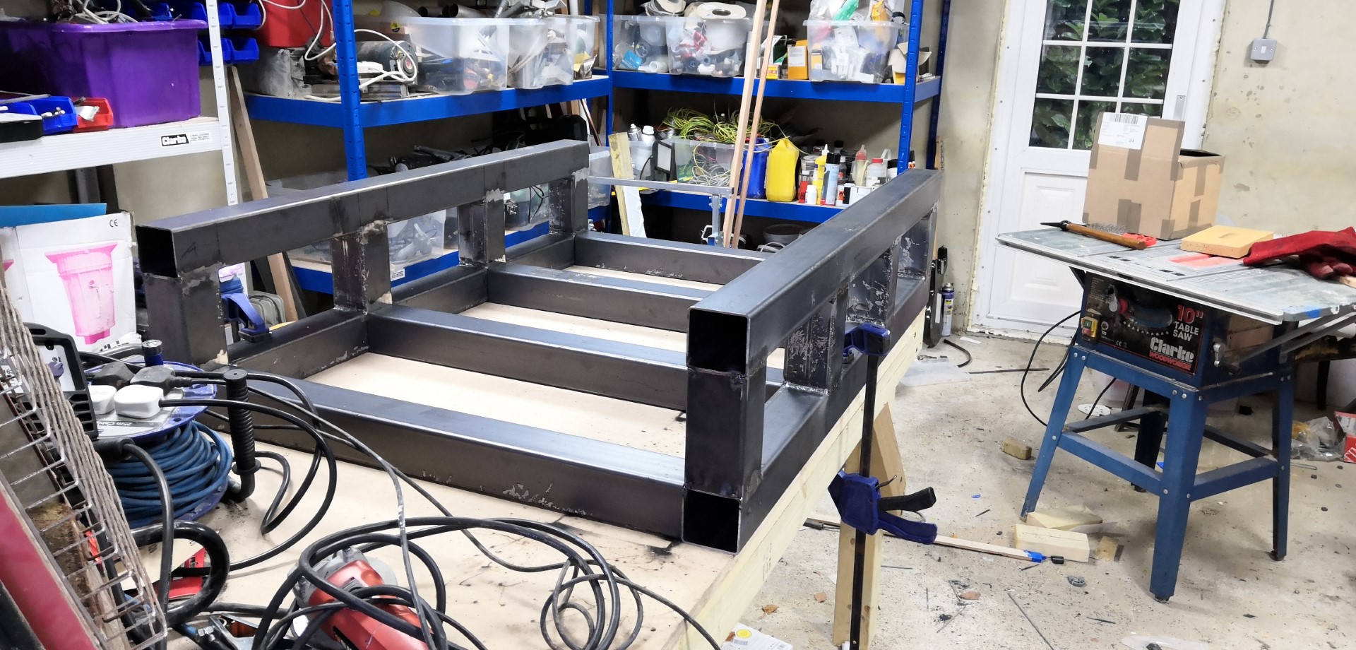 I think I will need to move everything directly onto the concrete to stand any hope of getting things stable enough to do any frame levelling. Problem will then be not kicking it during the process.