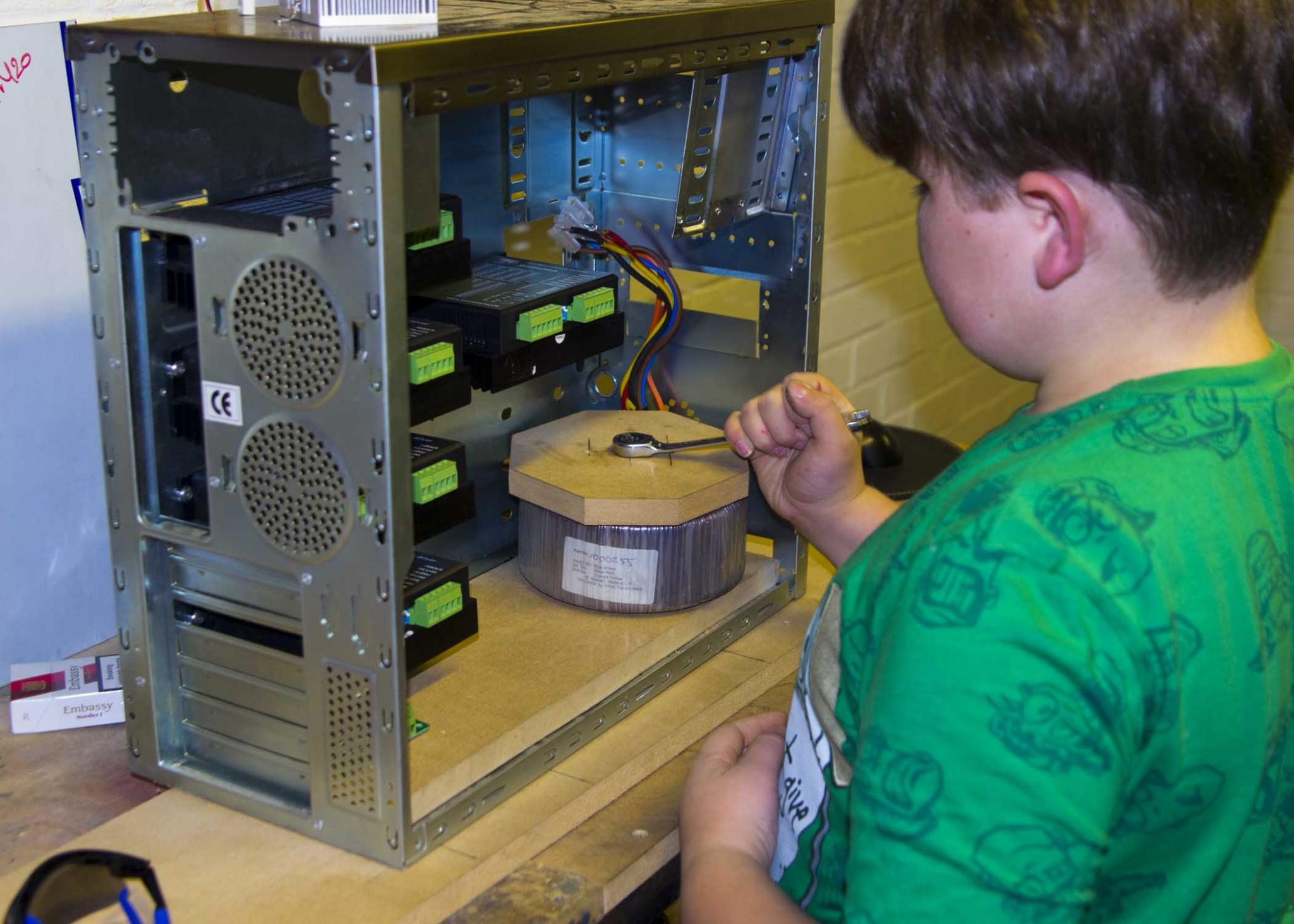 Now I must admit I did most of this and Luke just did the last one and as you can see he finished mounting the transformer