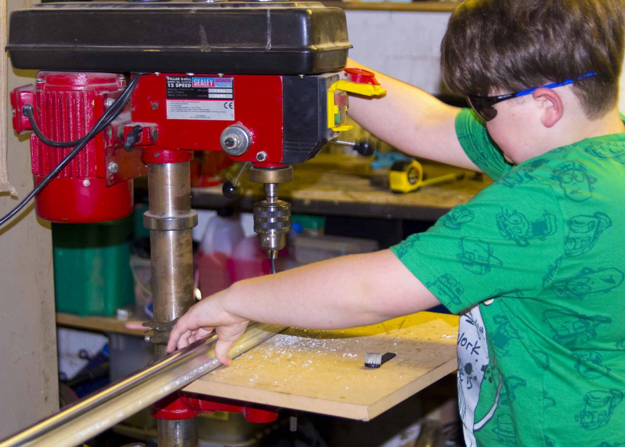 In this image Luke is drilling out the y-axis supported rails as they came blank