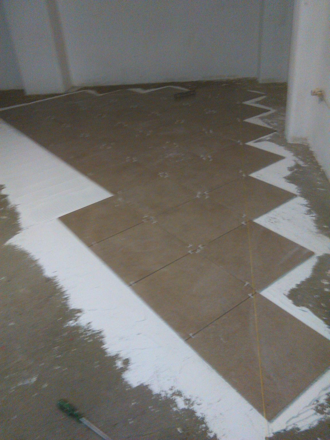It was the first time for me that i lay tiles in such a big scale ( 80 m2), and i lay them diagonally