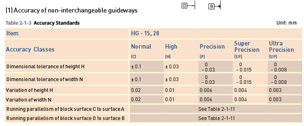 Hiwin maual (among others) has this table that says ( if i read right the table) that the height H of a rail has a range +- 0.1 mm for normal accuracy rails
