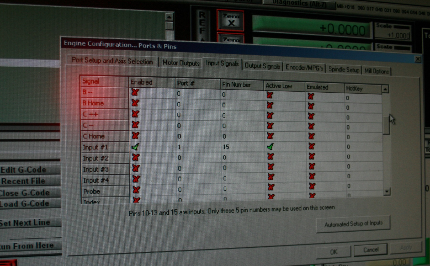 Better still post up the Mach Xml file of your setup and I'll have a look. you'll find it in mach3 folder using the same name as the profile your using and ending with xml. (Zip it up)