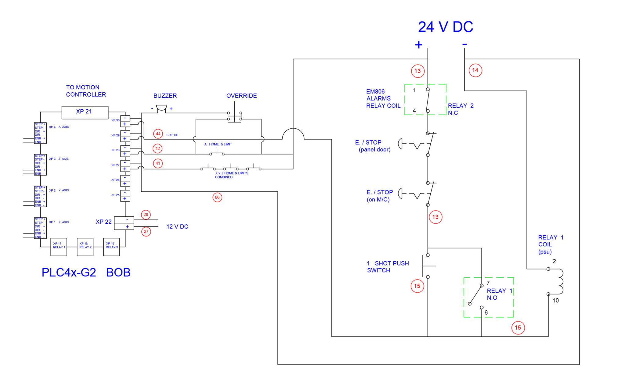 I'll need to know what pins on the BOB you are using control what on the machine. Ie Relays and there contact state ie NC or NO.