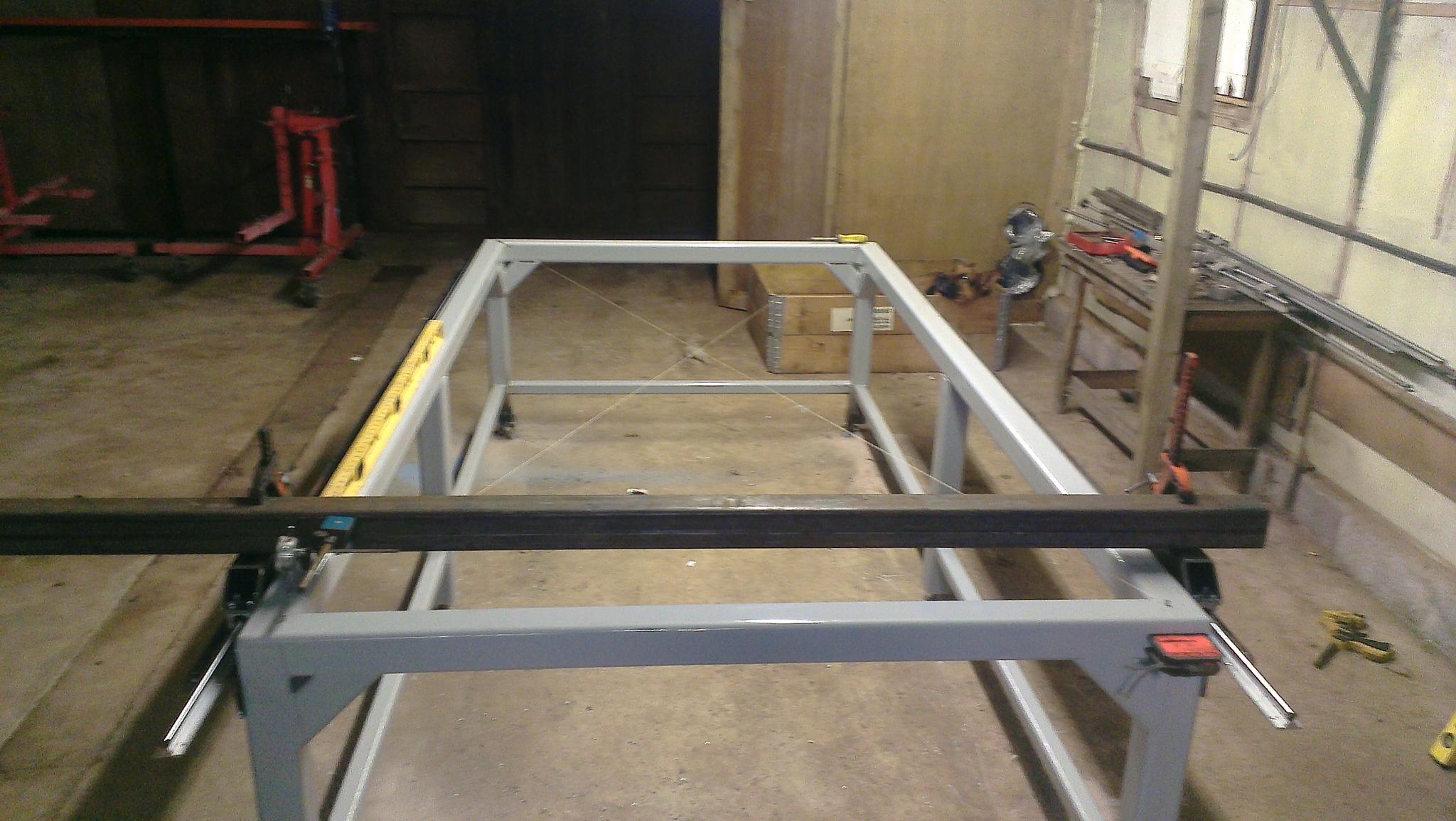 i quite like the mixed slat idea!...im going to use 100x50x6 angle to support the slats which will be spaced 20mm away from the main frame so i can eventualy turn it into a water table with down draft air extraction...im planning to use magnets to hold the torch to the z axis so if it hits anything it will break away.............