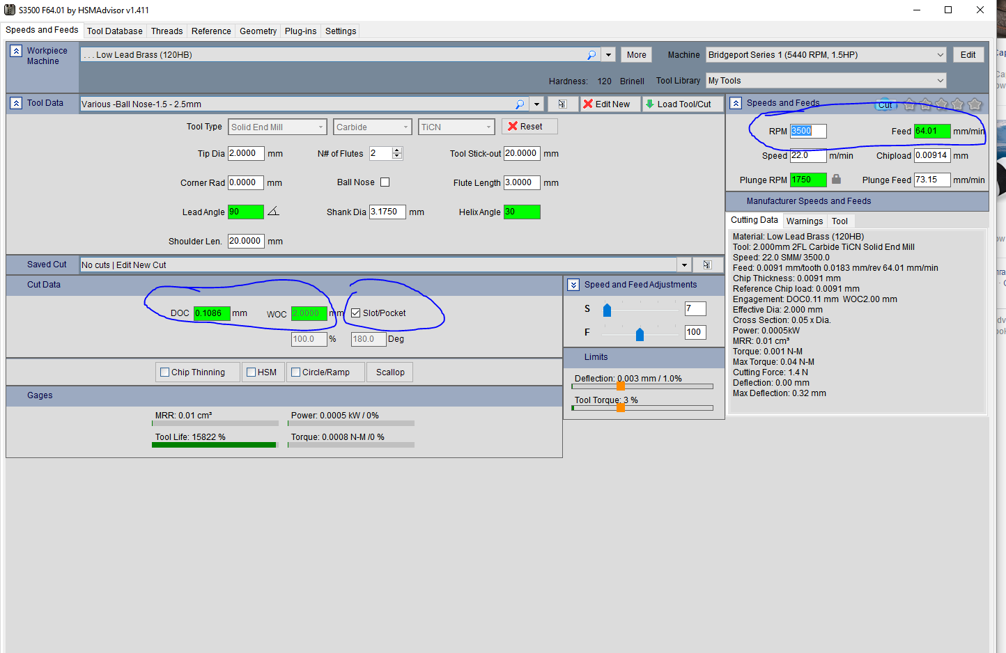 PS. Sorry above if you see its for edited ball nose cutters which i have the same size and type. But ball nose box is unchecked so its for straight flat end cutter. if Ball Nose are used, halve the depth of cut and double the feed