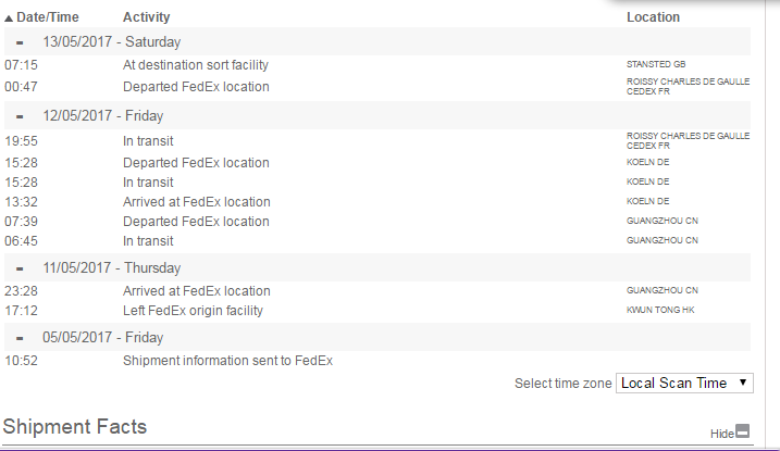 Tracking shows they did nothing for a week and then in 2 days it's here I wonder in future if I can pay a little extra for Fedex not to sit on it for a week lol.