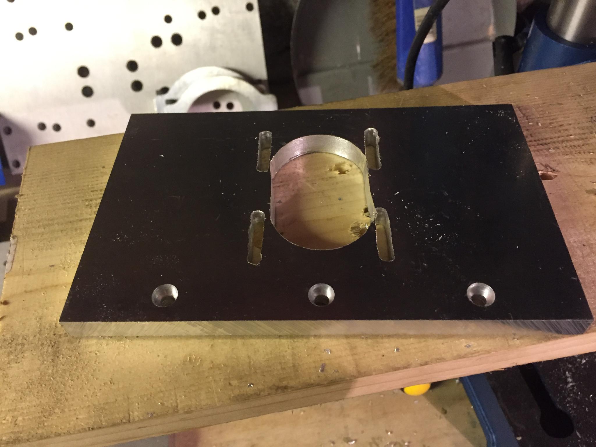 Countersinking of the holes to take the captive bolts that will hold the whole thing together.