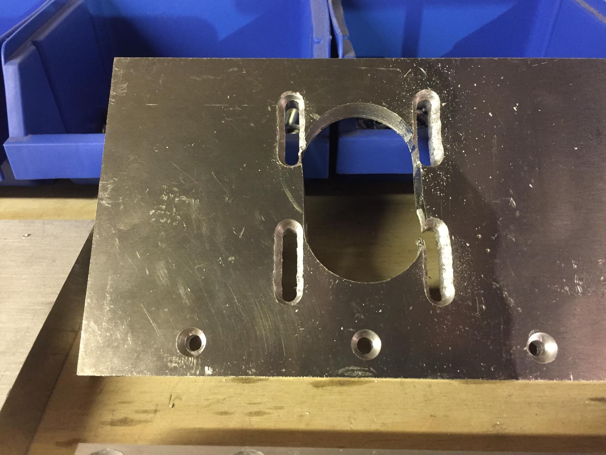 The two plates with all the holes drilled. All look to be in the right place. I'm fairly happy with how fairly straightforward this was. It was working with aluminum that was most unsure about as I have no real experience working with it. It's just like drilling wood but smoother!