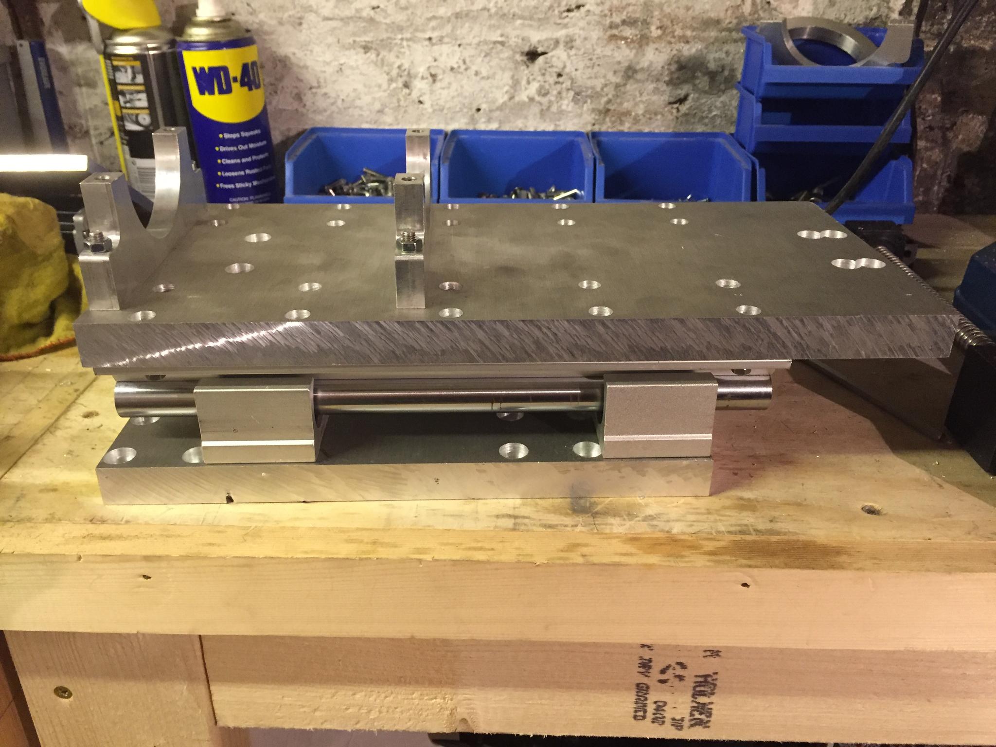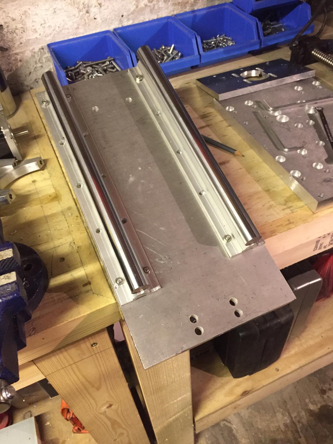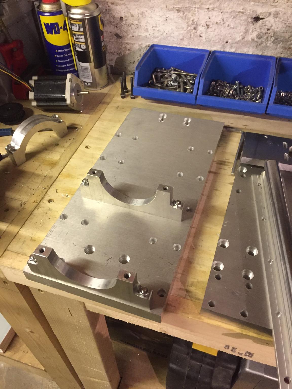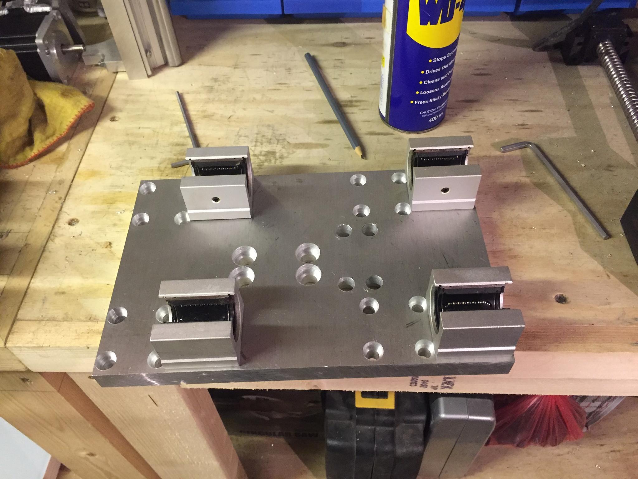 The process begins again for the front plate that will hold the ball screw bearing blocks, spindle mounts and the supported rails.