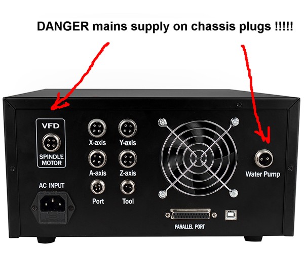 note – the danger of mains voltage on chassis mounting plugs !!!