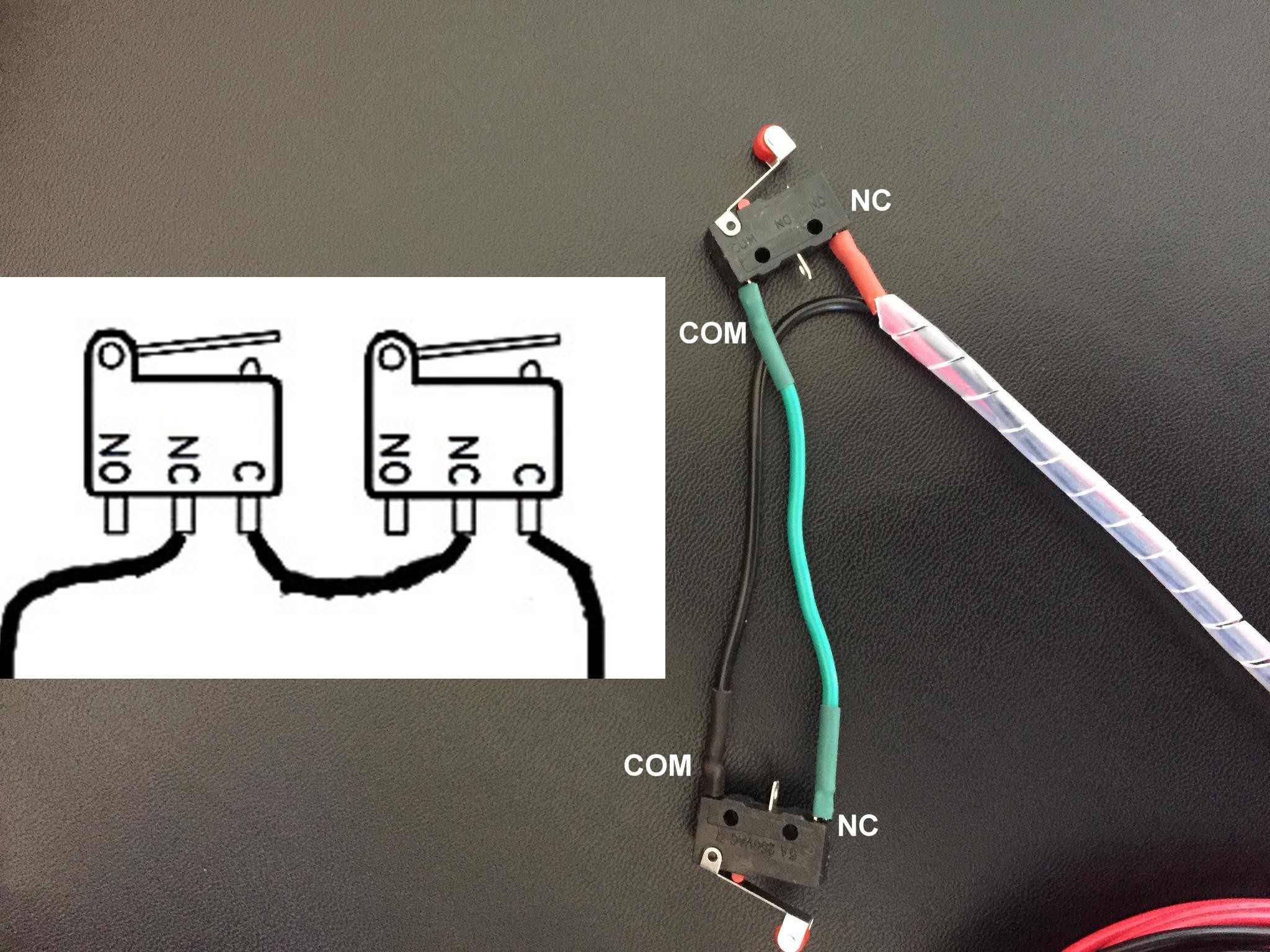 but your drawing has com and NO pin connected and mine is NC and COM pin on mini limit switches...