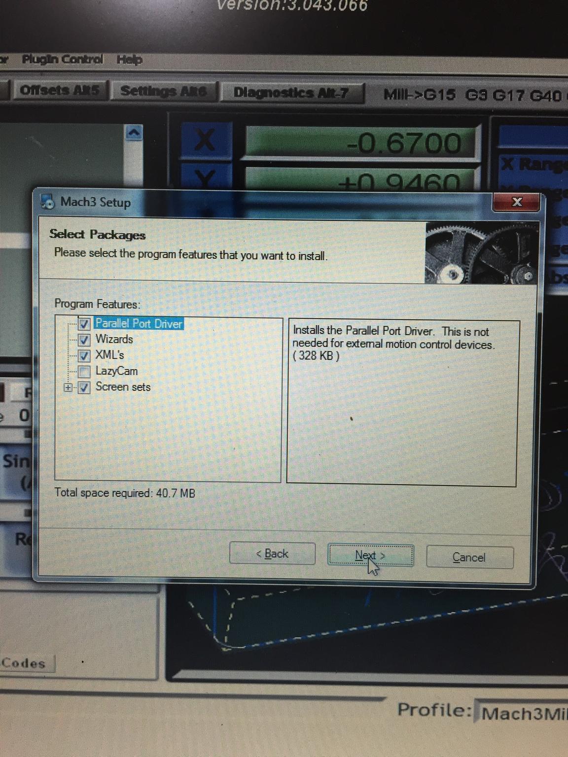 Now My machine is a cnc6040Z USB 3 axis and I would like to know how and what I need to select from Step 1: of the installing of Mach 3.exe :::of this pic
