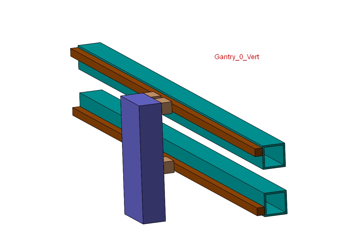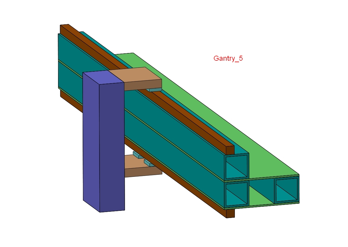 An easy change to the configuration of Gantry_3 was to increase the size of the "L" extension to the square 76mm tube used in other parts of the gantry. Called Gantry_4 and shown below.