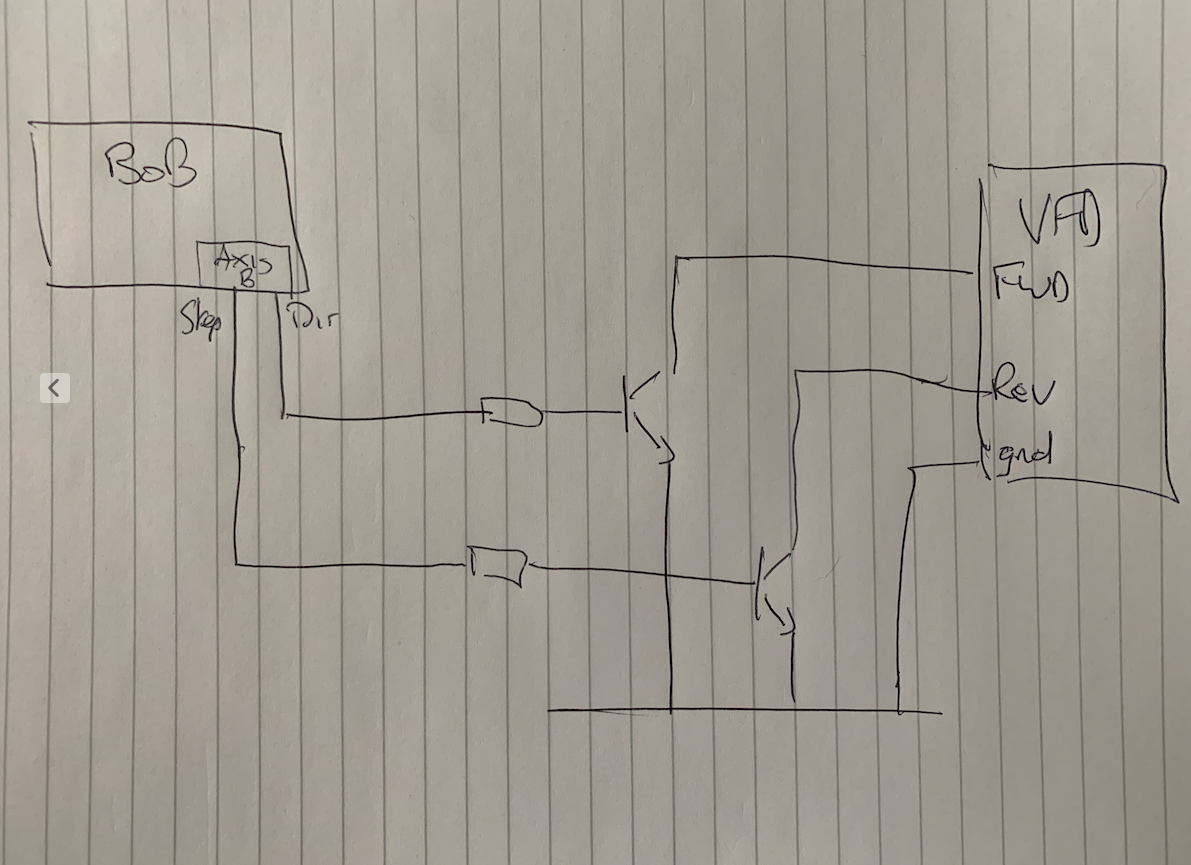 Now, the problem you have is interfacing to the VFD. The inputs to the VFD need to be pulled low (connected to ground) to activate. You *could* connect these directly to the BoB outputs (any of, including the relay output... more in a second), but the problem is they are likely pulled to 12-24V internally to the VFD. You don't really want to connect the outputs from the BoB to something at that voltage (though, it's likely to survive through the internal clamp diodes on the logic outputs). But I digress.