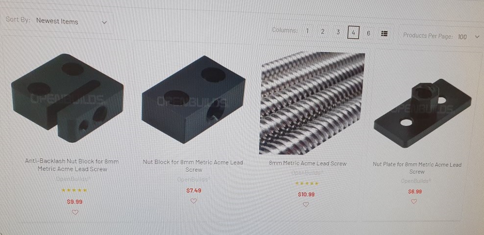 It appears that the OpenBuild machines all use 8mm ACME thread and the nuts are... a bit of a surprise?
