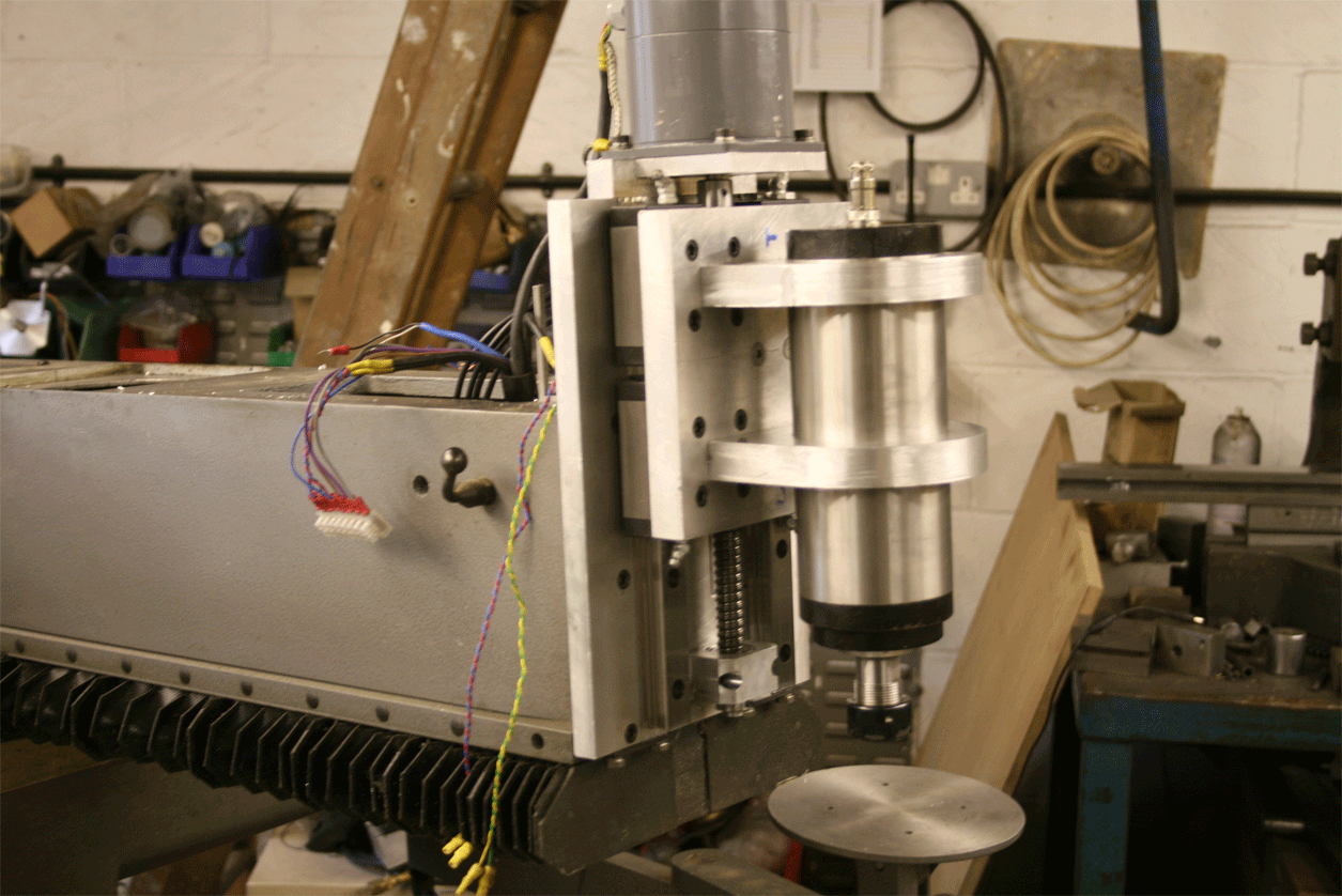 I have so far rebuilt the z axis to use a Chinese water cooled spindle motor and inverter and therefore done away with the belt driven spindle and the very noisy motor mounted top central of the mill grav i have also stripped out all of the original electronics and i am currently building a PC mother board with a smooth stepper to give two IO ports and a serial port to control the inverter, i am intending to use one port to work with a MPG and the other port as limits and over travel switches all of this is to be run under windoz and Mach3 much to 2e0poz's dismay and his attempts for me to run Linux... i am stead fast with this windoz rubbish