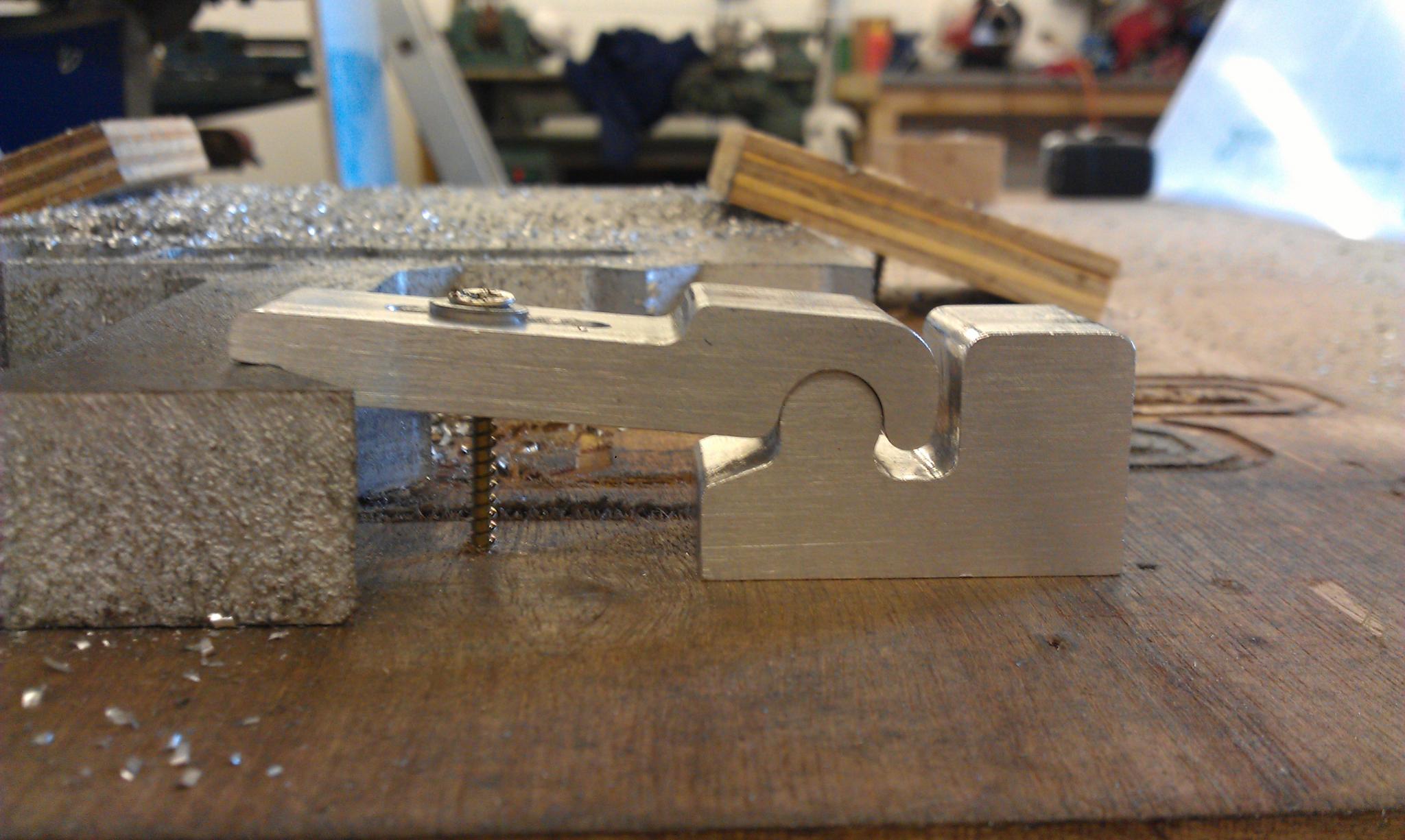 hopefully this pic will give you a better idea of how it works. This is 25mm thick plate its clamping. At the moment I have a wooden bed so Im using a wood screw but once my ali bed is in place I can use a 6mm bolt.