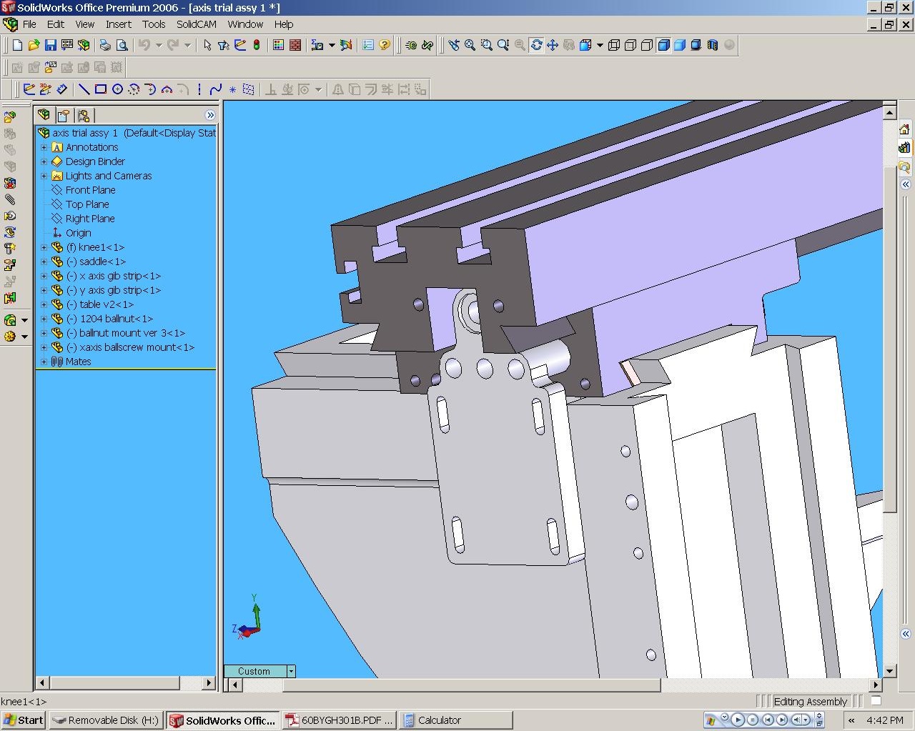 mount the ballscrew to the side of the saddle and use a small pulley so i can lower the motor down out of the way:glee: