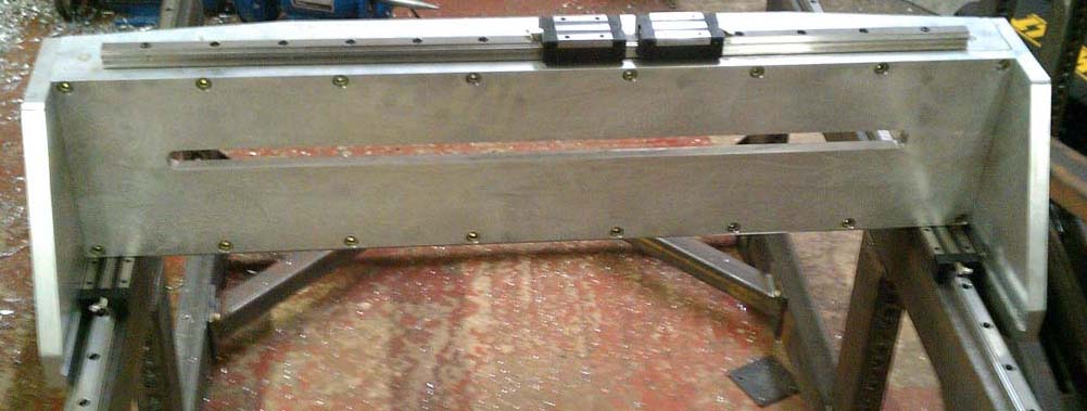 Nice looking gantry there. I entertained the idea of vee-bearings across the top and bottom edges with the drive passing through a slot like how you have it. Turns out getting hold of vee-bearings/rails etc isn't as easy and certainly not massively cheap enough to abandon supported rails.