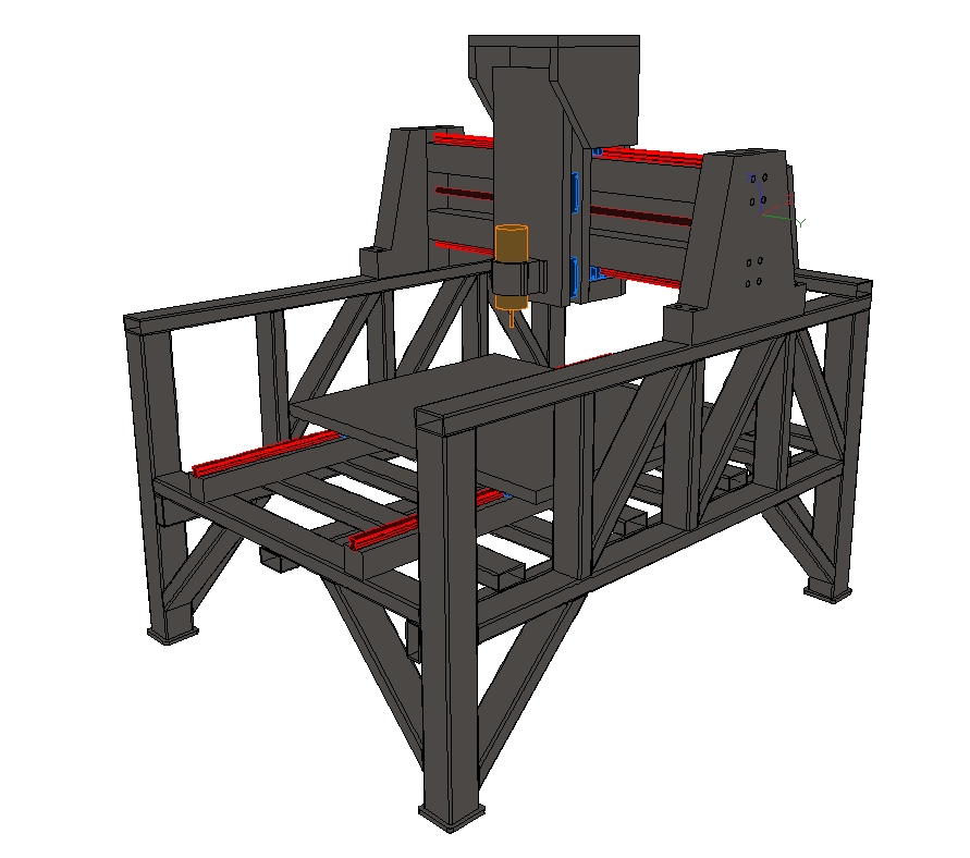 As I want to machine Ally and other sheet steels I've taken JAZZ' advice onboard and decided on a fixed gantry / moving table design. The overall length is 1500mm ish, overall width is 1200mm ish and the Z axis has 220mm movement. This should give me approx 750 x 750mm cutting area.